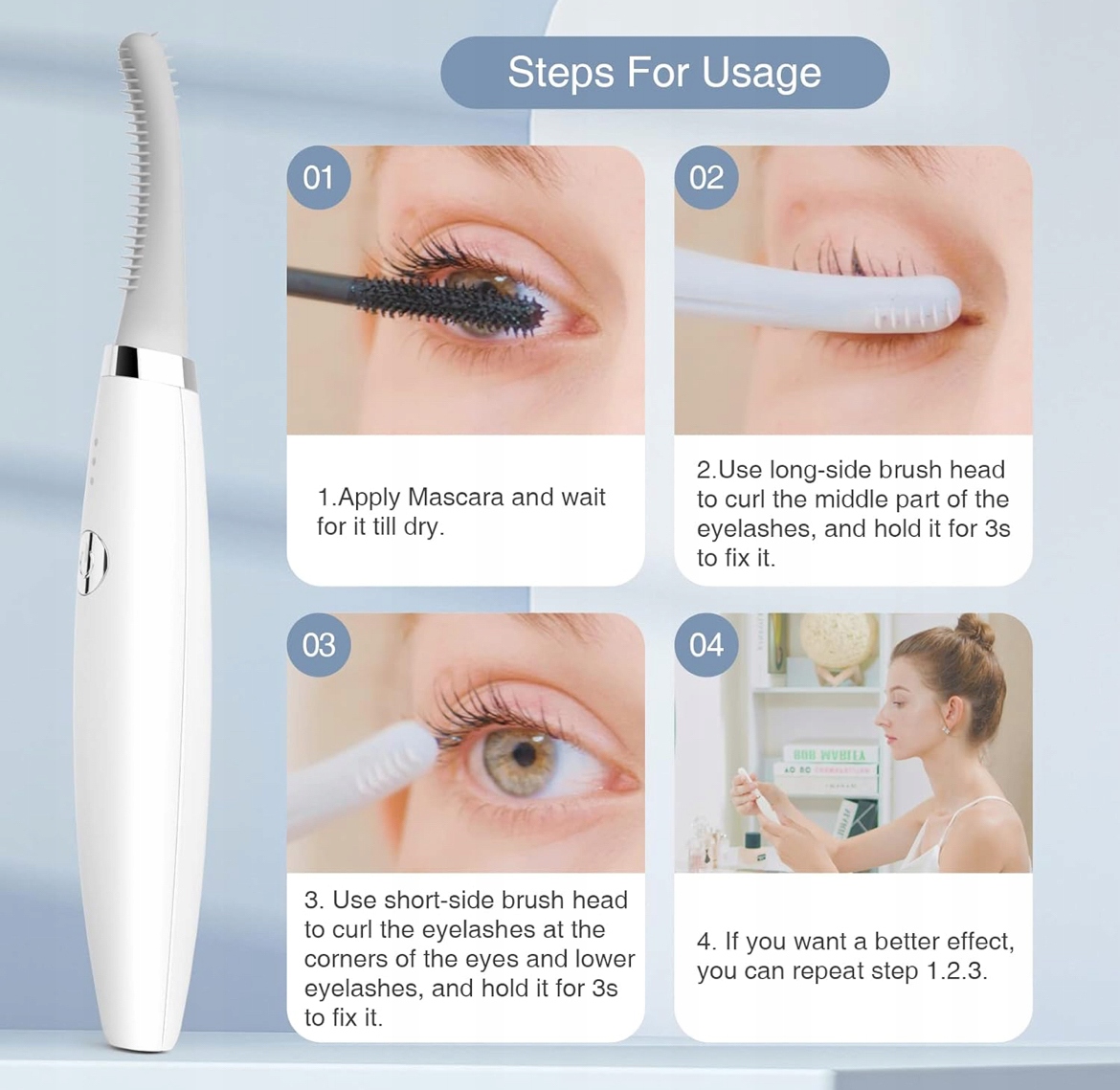 - 🔄 360 ° щетка головка - изогнутая двойная головка адаптируется к форме глаз и ресниц, обеспечивая равномерное завиток каждой ресниц, как в нижнем, так и в верхнем