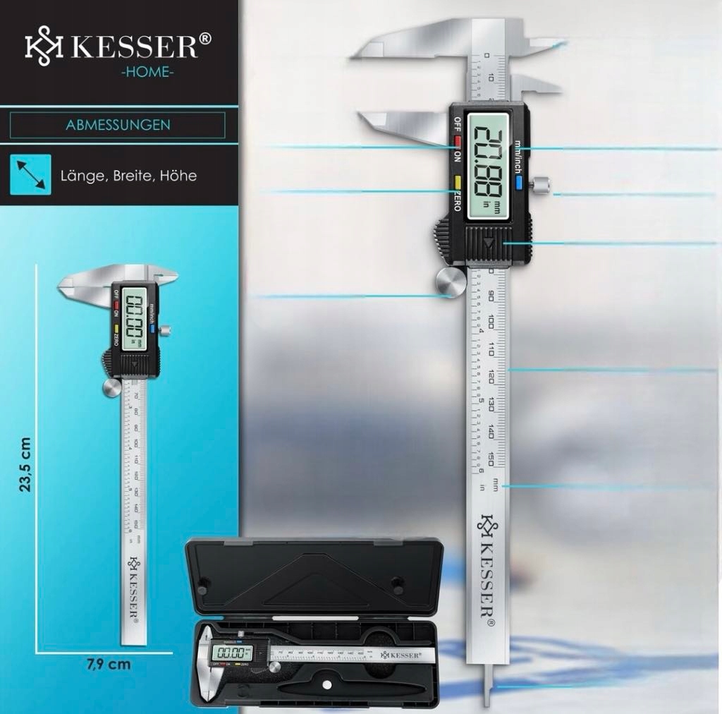 Точные измерения от Kesser! В промышленности и мастерстве необходимо регулярно выполнять внешние, внутренние и глубинные измерения, и поэтому штангвиграфический суппорт невозможно. Крэйн Kesser с электрическим питанием, что позволяет легко читать результаты измерения. Дополнительные преимущества -это легкая калибровка, а возможность чтения и быстрой обработки данных. Благодаря функции переключения, можно сделать измерения до 150 мм (15 см) или 6 дюймов
