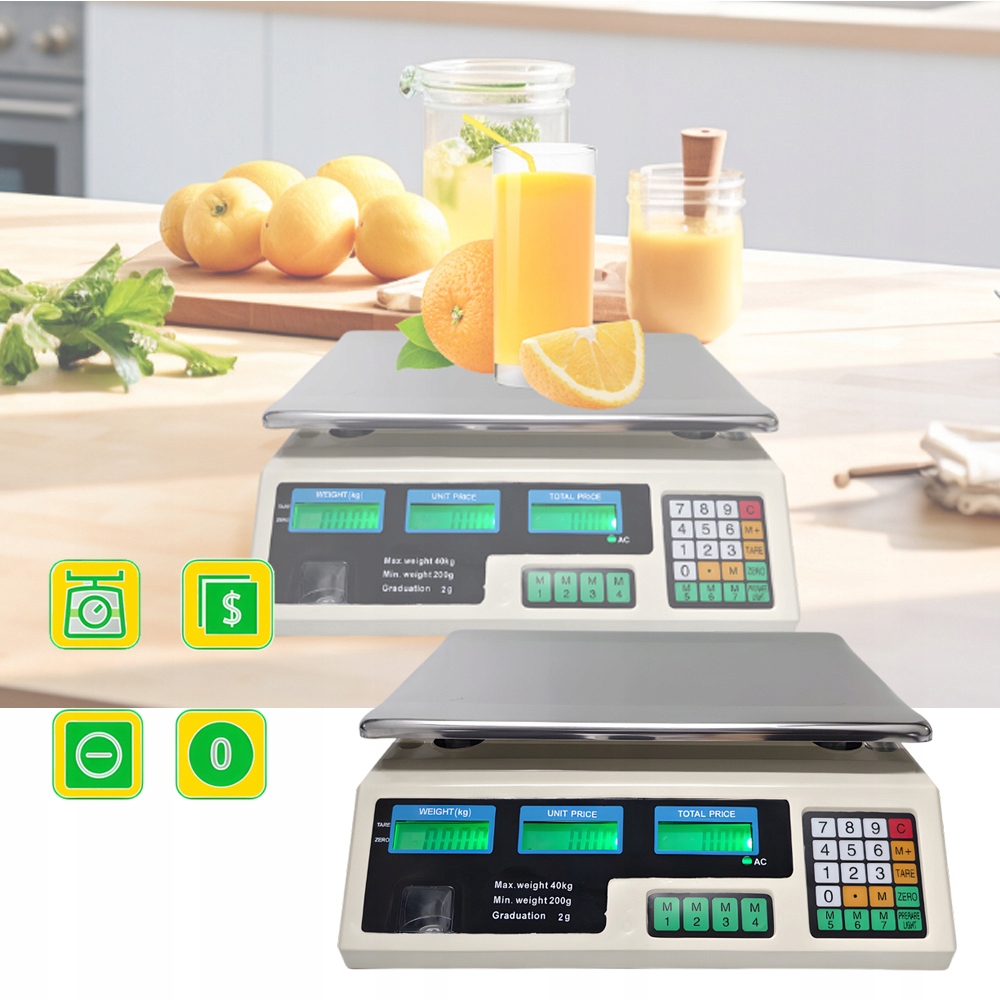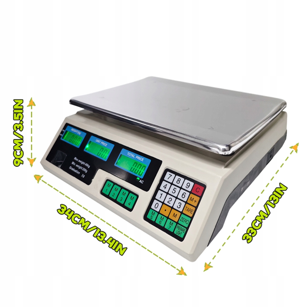 - Профессиональный, точный вес с встроенными датчиками, обеспечивающими точное определение массы и цены.