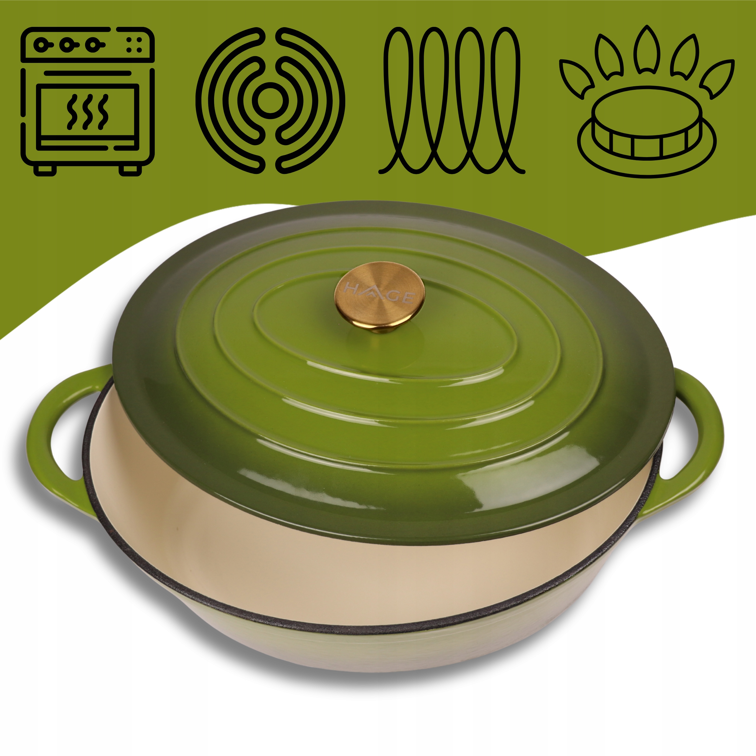Откройте для себя непревзойденный вкус и аромат блюд благодаря нашей эмалированной чугунной жаровне красивого, глубокого оливкового цвета. Это универсальный и незаменимый сосуд на каждой кухне, сочетающий в себе традиционную прочность чугуна с современной элегантностью. Идеально подходит для запекания, тушения, запекания и готовки, позволит заново открыть для себя радость создания кулинарных шедевров.