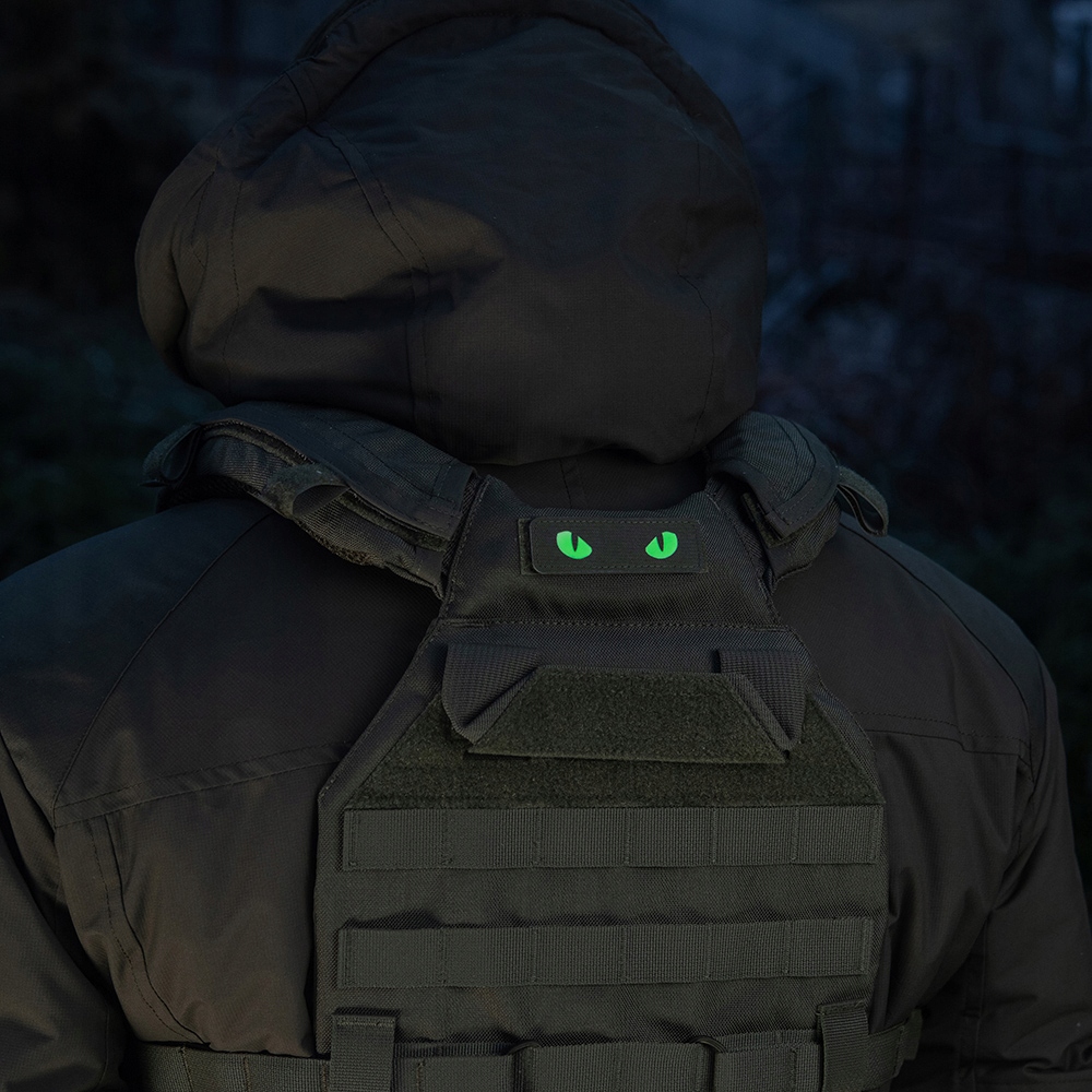 Глаза на нашивке изготовлены из флуоресцентного материала, светящегося в темноте, что повышает нашу видимость в темноте.