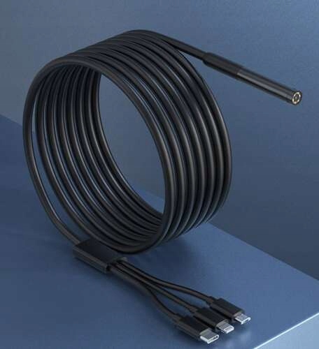 - Приложение камеры + 3 Концы кабеля - камера совместима с телефоном, в котором вы устанавливаете приложения Anesok. Приложение работает в таких системах, как Android и iOS. В камере есть 3 совета по телефону, такие как: MicroUSB, Lightning и USB-C.