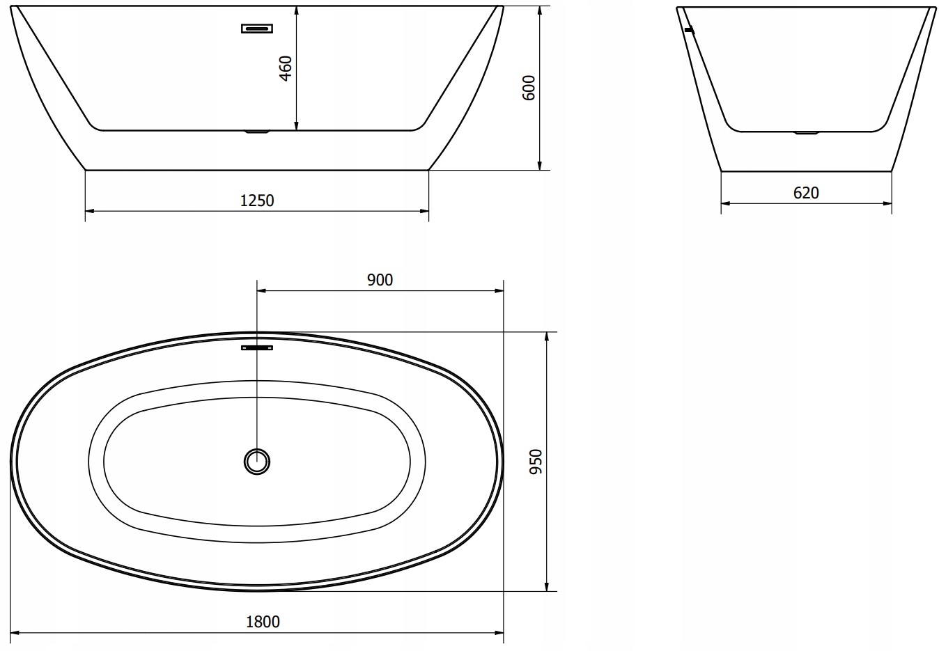 ERIS ВАННА ОКРЕМНОСТІЮЧА 180 x 95 ЧОРНА + СИФОН, ХРОМ II КОР.