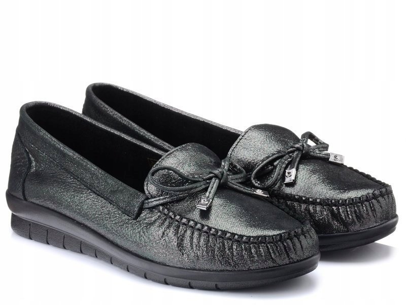 - Черные женские мокасины, сделанные из натуральной кожи >