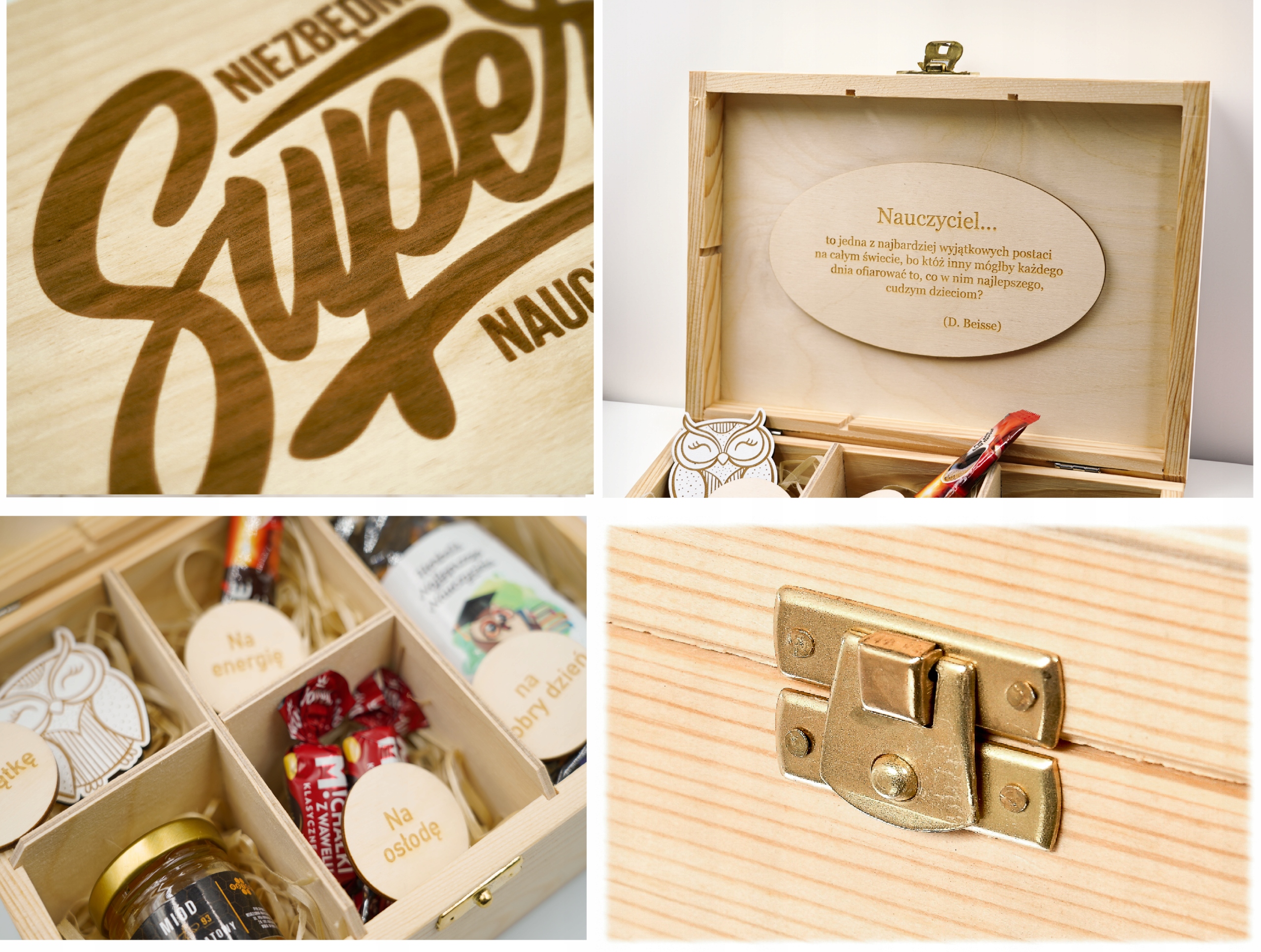 Самым большим преимуществом наших коробок является возможность персонализации посредством гравировки. Места, которые могут быть изменены, отмечены красным. Дайте нам имя учителя, дату и любую подпись (если возможно, в выбранном вами дизайне), и мы выгравируем их на коробке. Это придает шкатулке индивидуальный и уникальный вид, делая ее особенным сувениром, который будет иметь значение на протяжении многих лет.