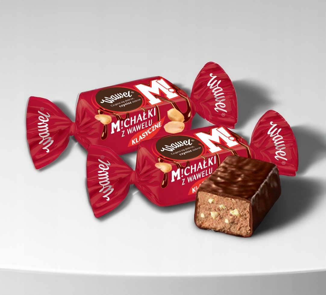 Вкусные конфеты Michałki от Wawel Classic – это сочетание изысканной шоколадной сладости, нотки ароматного какао и интерьера, наполненного хрустящим арахисом.