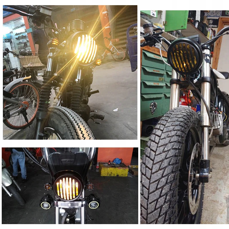 Решетка в стиле старой школы на фонаре придаст каждому автомобилю классический и уникальный вид. Этот продукт предназначен для людей, которые хотят придать своим мотоциклам уникальный внешний вид. В лампе установлена лампа H4 мощностью 35 Вт с ближним и дальним светом, а также габаритная лампа.