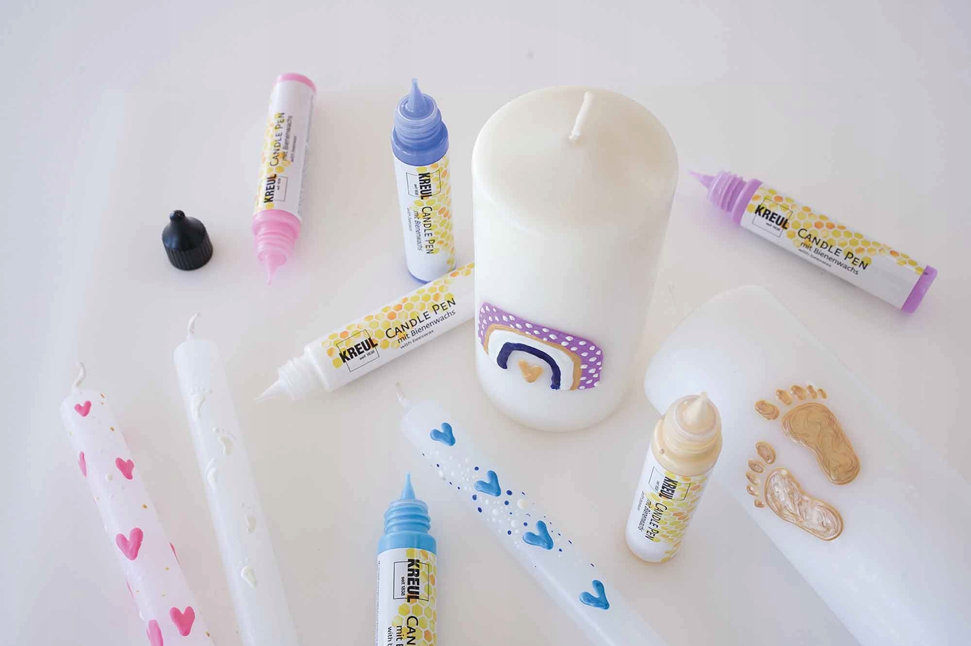 Краски-ручки Kreul для декора свечей, изготовленные на основе воды и пчелиного воска.