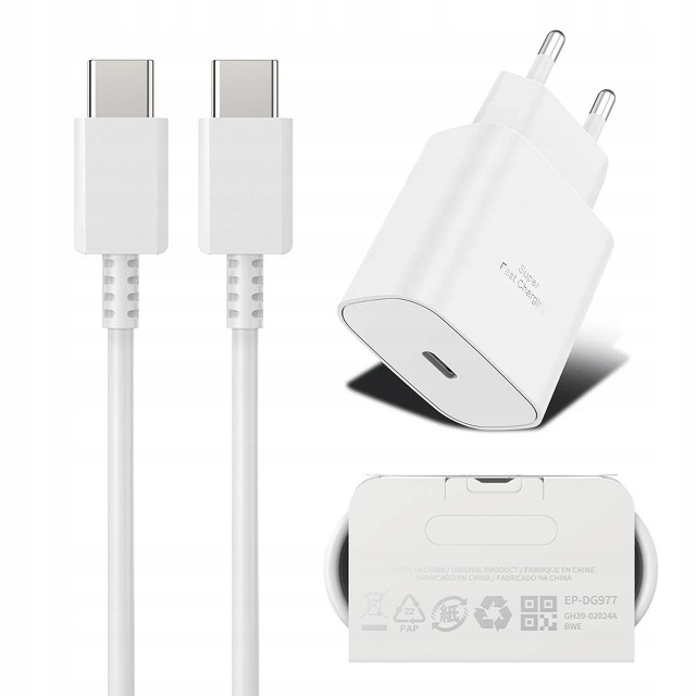 FAST CHARGER для Samsung A14 15 A34 A54 A55 USB-C 25W + USB-C Кабель 1м