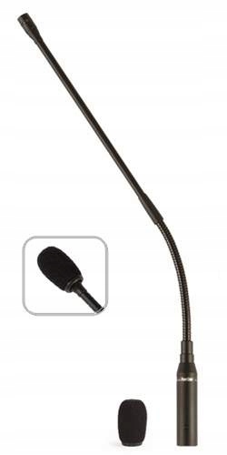 Высококачественный емкостный микрофон на гусиной шеи. Один кардиоидные характеристики с микрофоном длиной 45 см, разъем XLR. Защита ветра. Питание 22-48V DC.