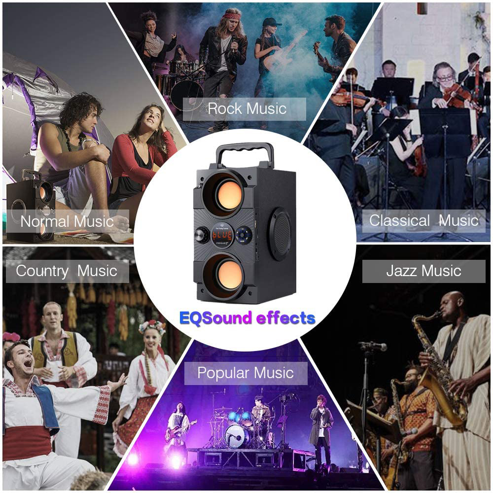 Акустическая система Feegar идеально подходит для вечеринки, спортзала, рыбалки, стройки, пикника, кухни, офиса, матча, на природе, в комфорте дома или во время отдыха. смотрю фильм. Аккумулятор обеспечит продолжительное удовольствие. С помощью специального контроллера вы можете настроить динамик на определенную музыку/фильмы и отрегулировать соответствующую громкость. Сама колонка оснащена 2 низкочастотными динамиками и 2 высокочастотными динамиками, что обеспечит отличное качество звука.