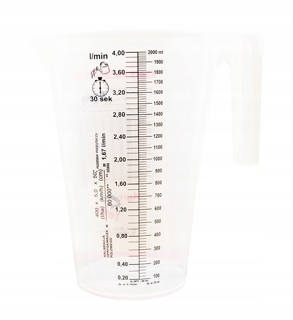 СОСУДА, КАЛИБРОВОЧНАЯ МЕРНАЯ ЧАШКА 2 Л ДЛЯ ОПРЫСКИВАНИЯ, ИЗМЕРЕНИЯ