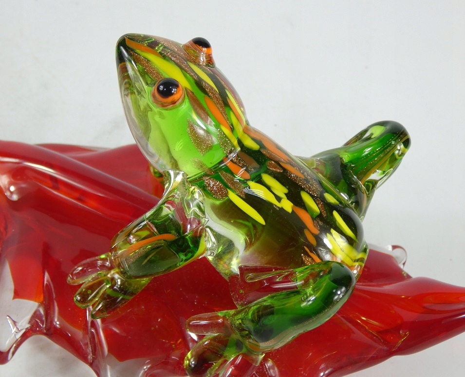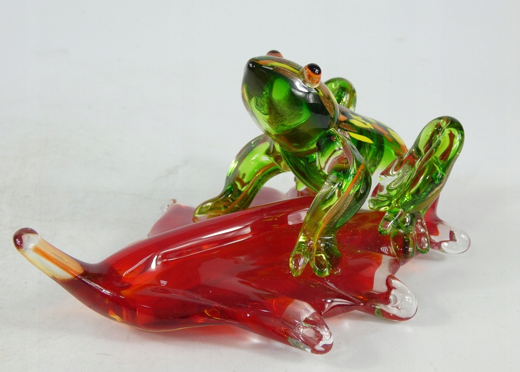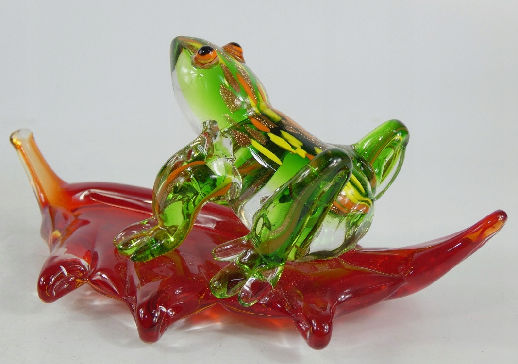 Фигура стеклянная лягушка мурано лягушка на листе листа