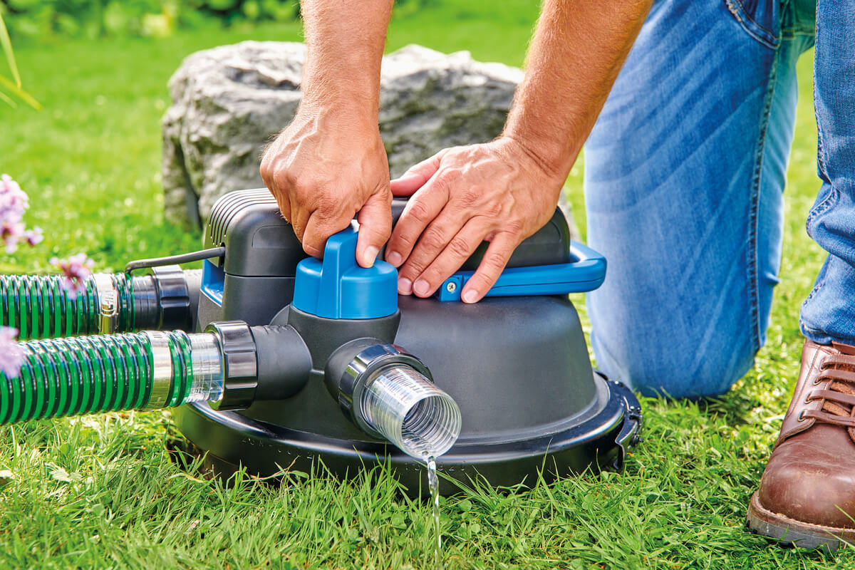 Самого фильтра недостаточно для очистки прудовой воды. Вам также понадобится мощный и надежный насос. В комплект входит насос Oase AquaMax Eco Premium 4000. Данное устройство отличается высокой производительностью до 4000 л/ч. Несмотря на это, мотор потребляет мало электроэнергии, потребляя всего 35 Вт электроэнергии. Этот насос может работать как при полном погружении, так и при размещении вне воды. Если вы поместите его под поверхность воды, вы можете подключить, например, скиммер к одному из его входов. AquaMax оснащен инновационной системой сезонного контроля расхода (SFC). Эта функция позволяет устанавливать скорость потока воды в зависимости от ее температуры. Насос также оснащен функцией EFC, защищающей от сухого хода. Если воды нет, устройство выключится само и двигатель не выйдет из строя.