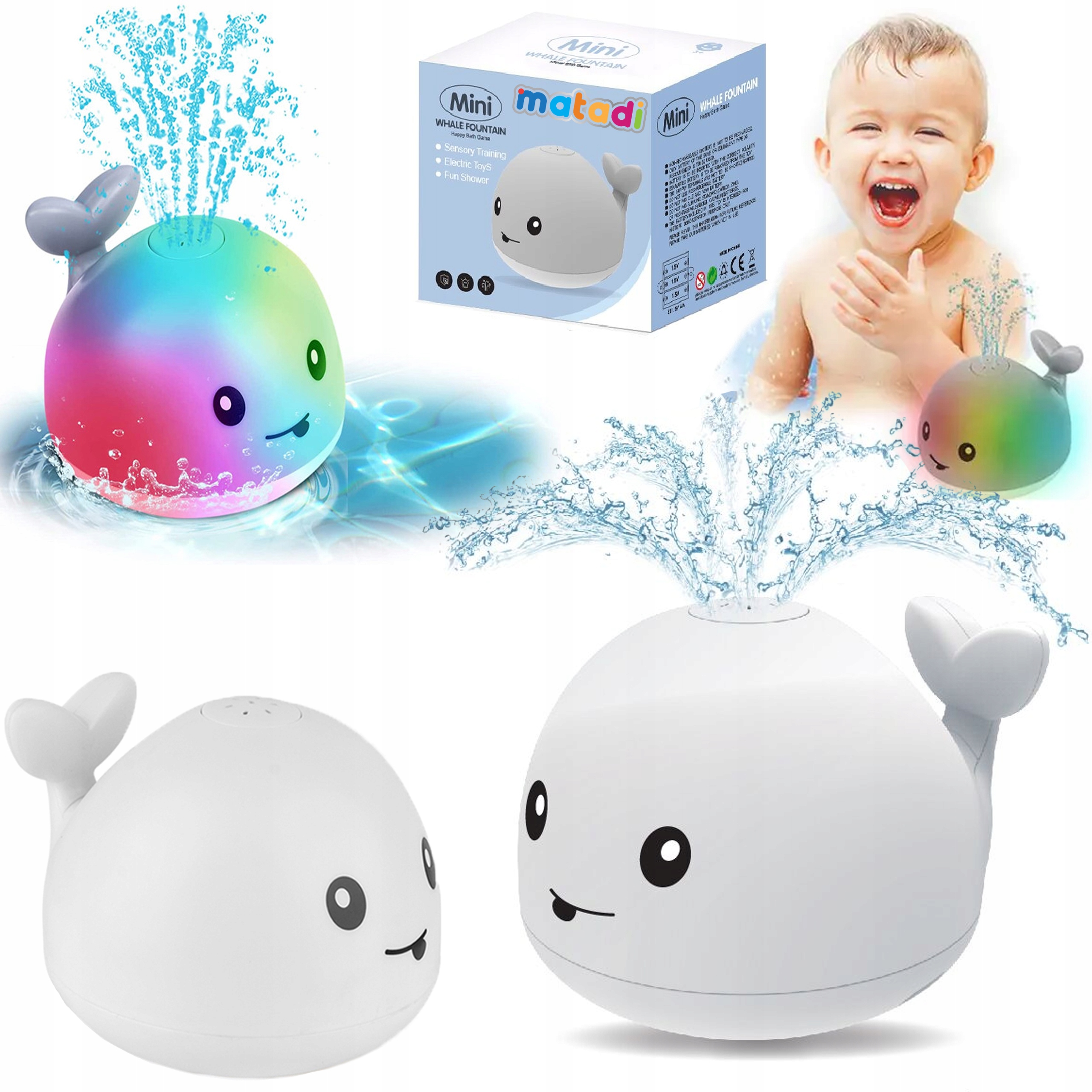 Когда кит погружается в воду, он автоматически активируется и создает мини-фонтан. Брызги воды сопровождаются разноцветными, меняющимися огнями.