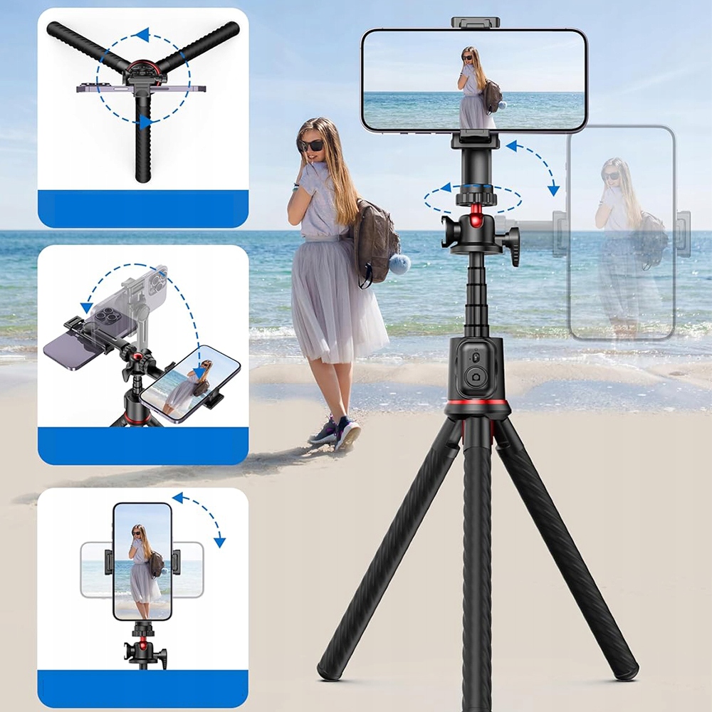 Этот универсальный гибкий штатив оснащен расширением алюминиевого сплава, который можно отрегулировать в диапазоне от 46 см (18,11 дюйма) до 66 см (25,98 дюйма), чтобы адаптироваться к различной высоте снимаю. Его универсальные функции включают в себя селфи -палку для ручных спортивных камер, которые позволяют простым снимать с первого человека; Столочный штатив для стабильной поддержки; и гибкое крепление для обертывания заборов, стволов деревьев или велосипедных рулевых колес для адаптации к сложным внешним условиям. Гибкое регулирование позволяет снимать даже на неровных поверхностях, разрушая ограничения традиционных штатива.