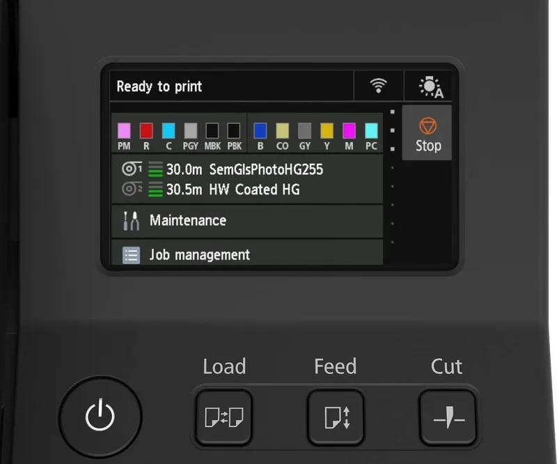Новая панель управления предлагает пользователям еще больше удобства и управления. Перед началом процесса печати можно тщательно проверить важную информацию. Благодаря новому решению, пользователи теперь могут получить подробную информацию о количестве оставшихся чернил. Кроме того, панель предоставляет подробную информацию о типе и доступности носителя. Это обеспечивает более точное управление оставшимся числом носителя, что приводит к повышению контроля процесса печати и оптимальному использованию ресурсов.