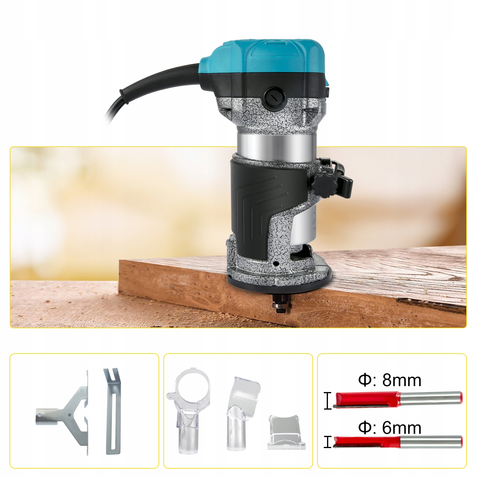 Входящие в комплект аксессуары: В комплект поставки этого фрезерного станка по дереву входят 3 цанги. В комплект входит направляющая кривой, которая поможет вам точно вырезать форму кривой. Самое главное, что входящие в комплект биты 6 мм и 8 мм позволяют использовать станок сразу после его получения.