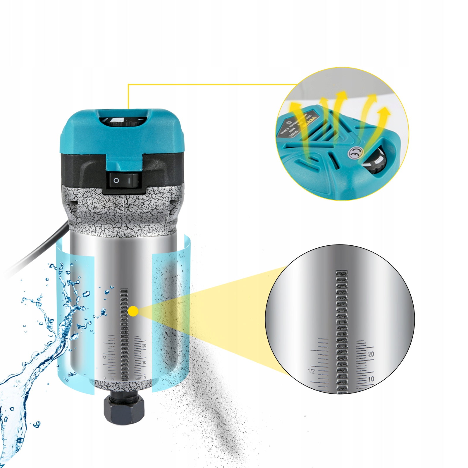 Система непрерывной регулировки глубины может обеспечить более точную настройку, а ручка регулировки скорости (10000–30000 об/мин) позволяет пользователям регулировать скорость для различных применений. . Устойчивый к высоким температурам двигатель с медным проводом довольно долговечен.