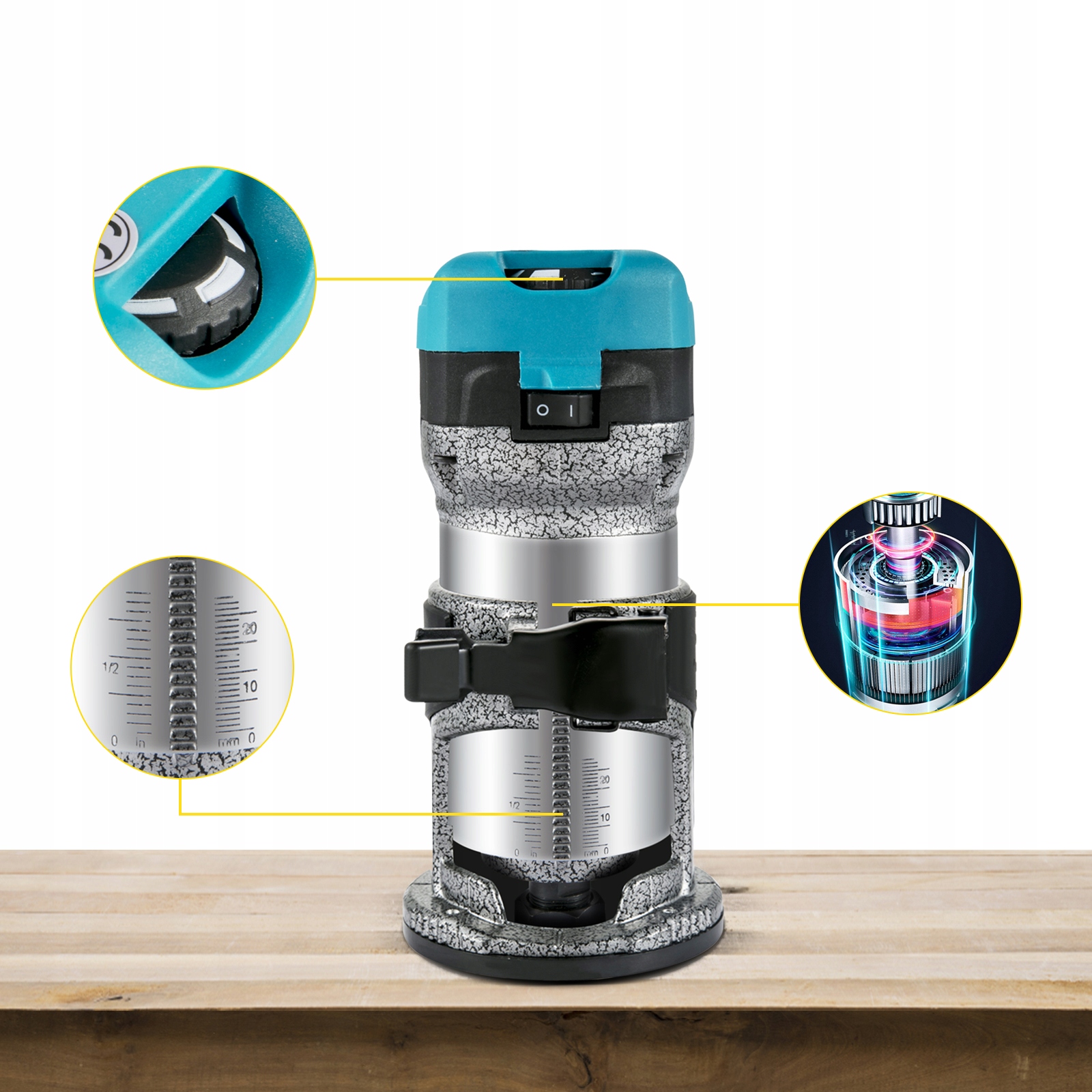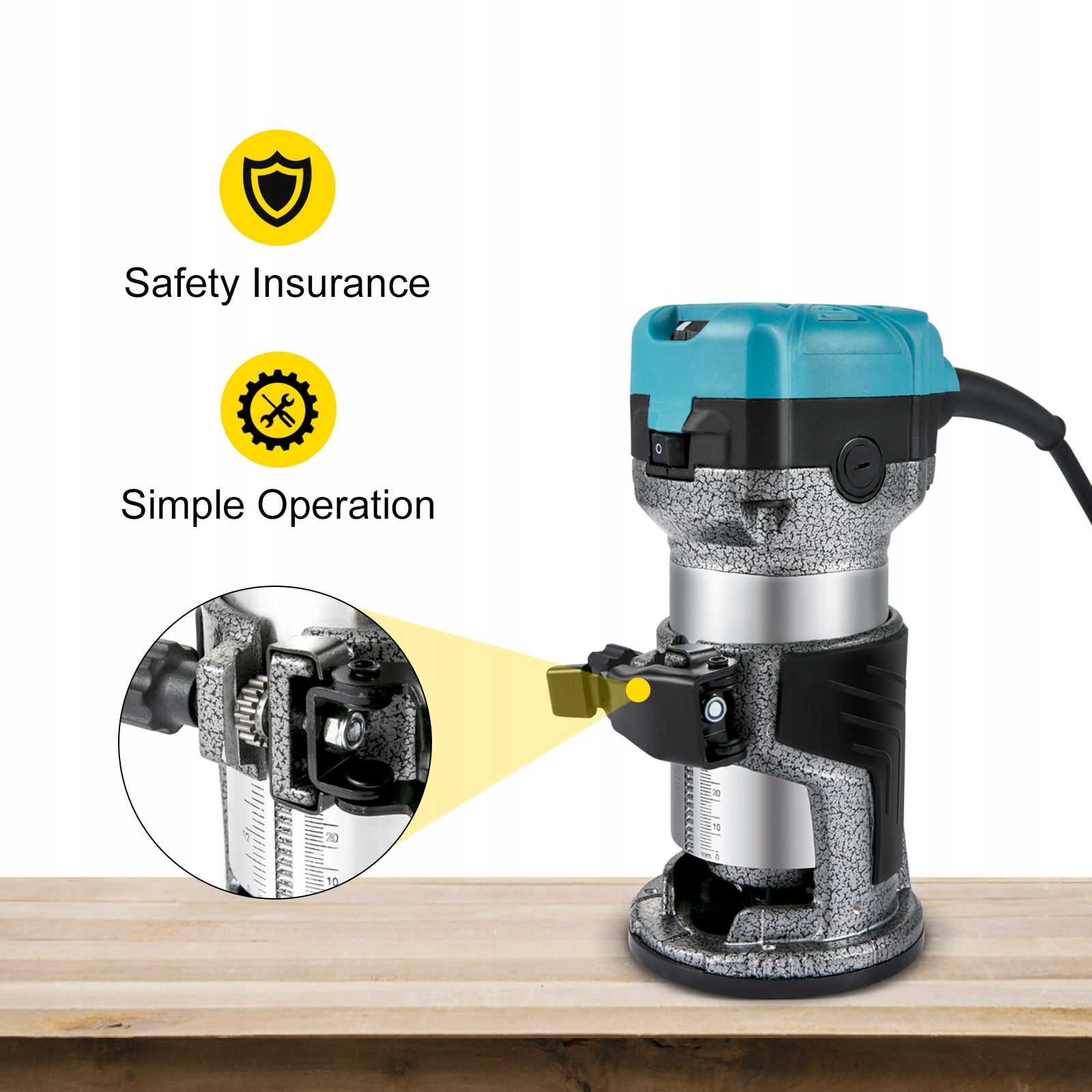 Точная настройка: благодаря плавной системе регулировки глубины фрезерный станок по дереву может обеспечить более точную настройку. Ручка управления скоростью может соответствовать различным требованиям скорости. Кроме того, медный двигатель довольно долговечен.