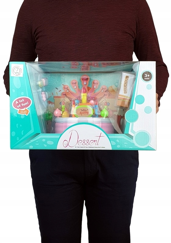 Многоэтажный праздничный торт, состоящий из большого торта, разделенного на 6 частей, соединенных липучками, и торта поменьше. В наборе есть различные украшения, которые позволят вашему ребенку украсить торт по своему усмотрению. В комплект также входят 6 свечей, в том числе одна поющая, которая соединена с отрезком дорожки.
