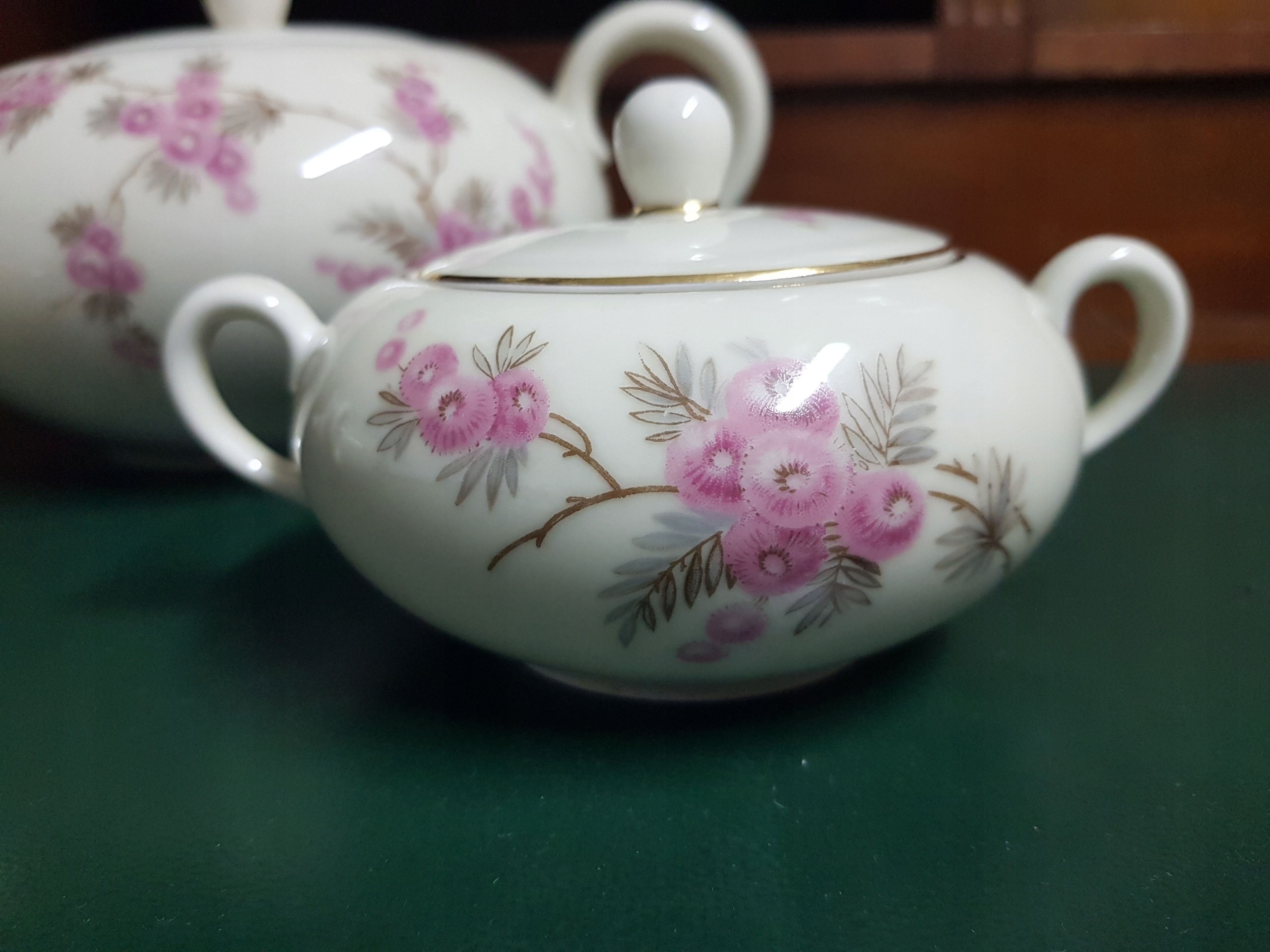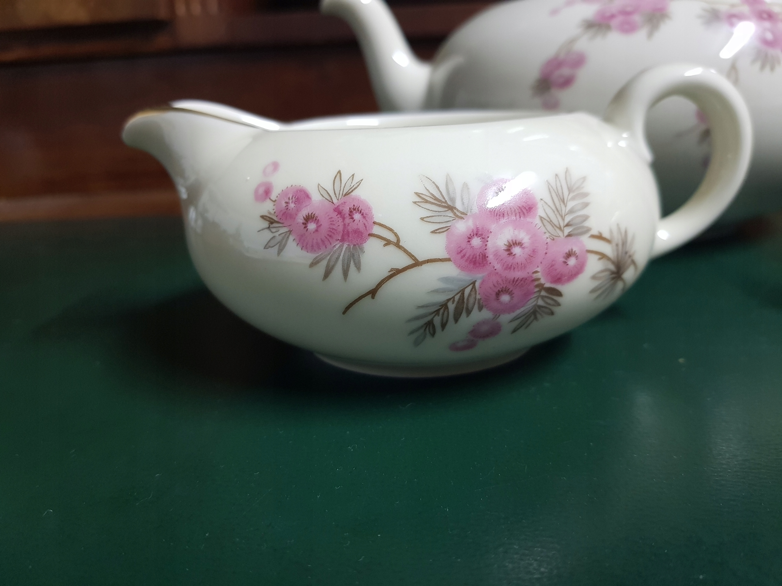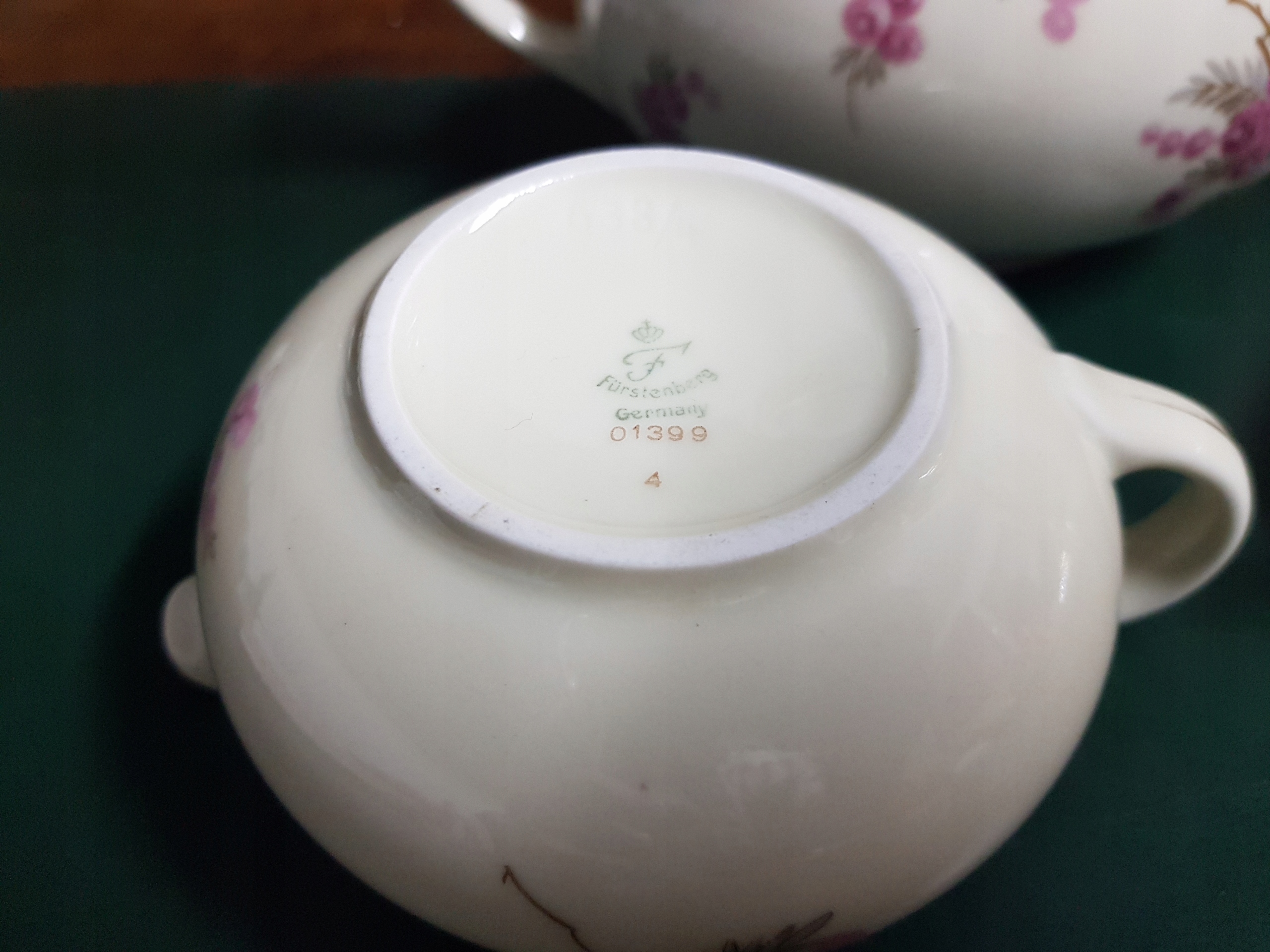 Предмет аукциона — столовый сервиз «Фюрстенберг» с мотивом «Мимоза».Кувшин с ситечком.Кремовый фарфор.Нежная позолота.