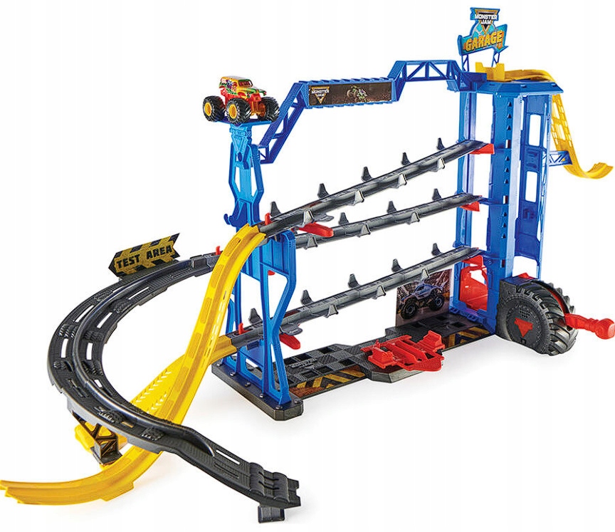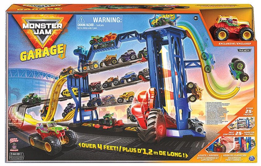 - Гаражный игровой набор Monster Jam огромен — более 4 футов в ширину и 2 фута в высоту! На каждом уровне есть своя рампа для эпических трюков! Скатывайтесь по пандусам и превышайте скорость!