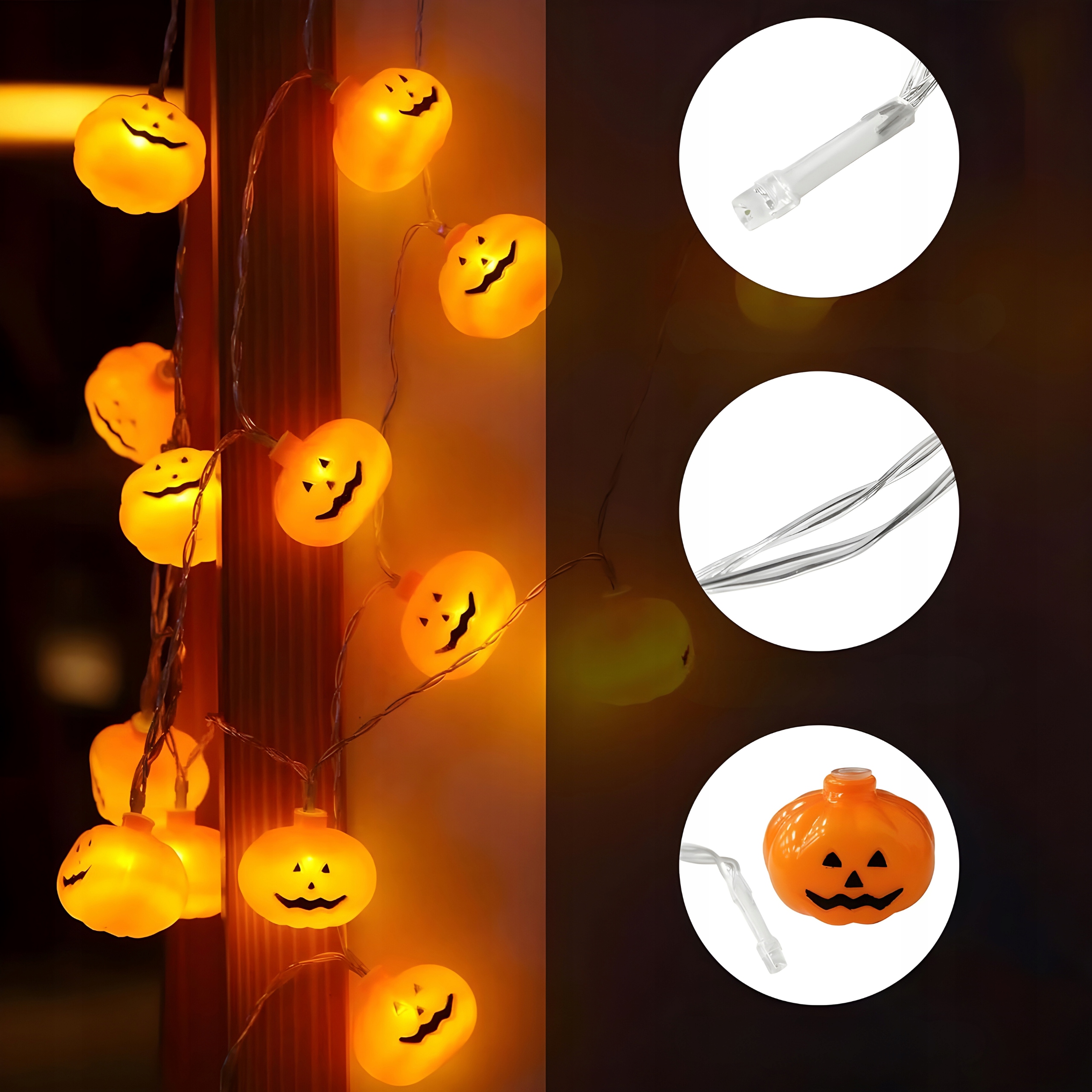 ✅ 10 светодиодов - 10 ТЫКВЕННЫХ СВЕТИЛЬНИКОВ В ОДНОЙ ГИРЛАНДЕ - МОЩНЫЙ И ТЕПЛЫЙ СВЕТ СВЕТ