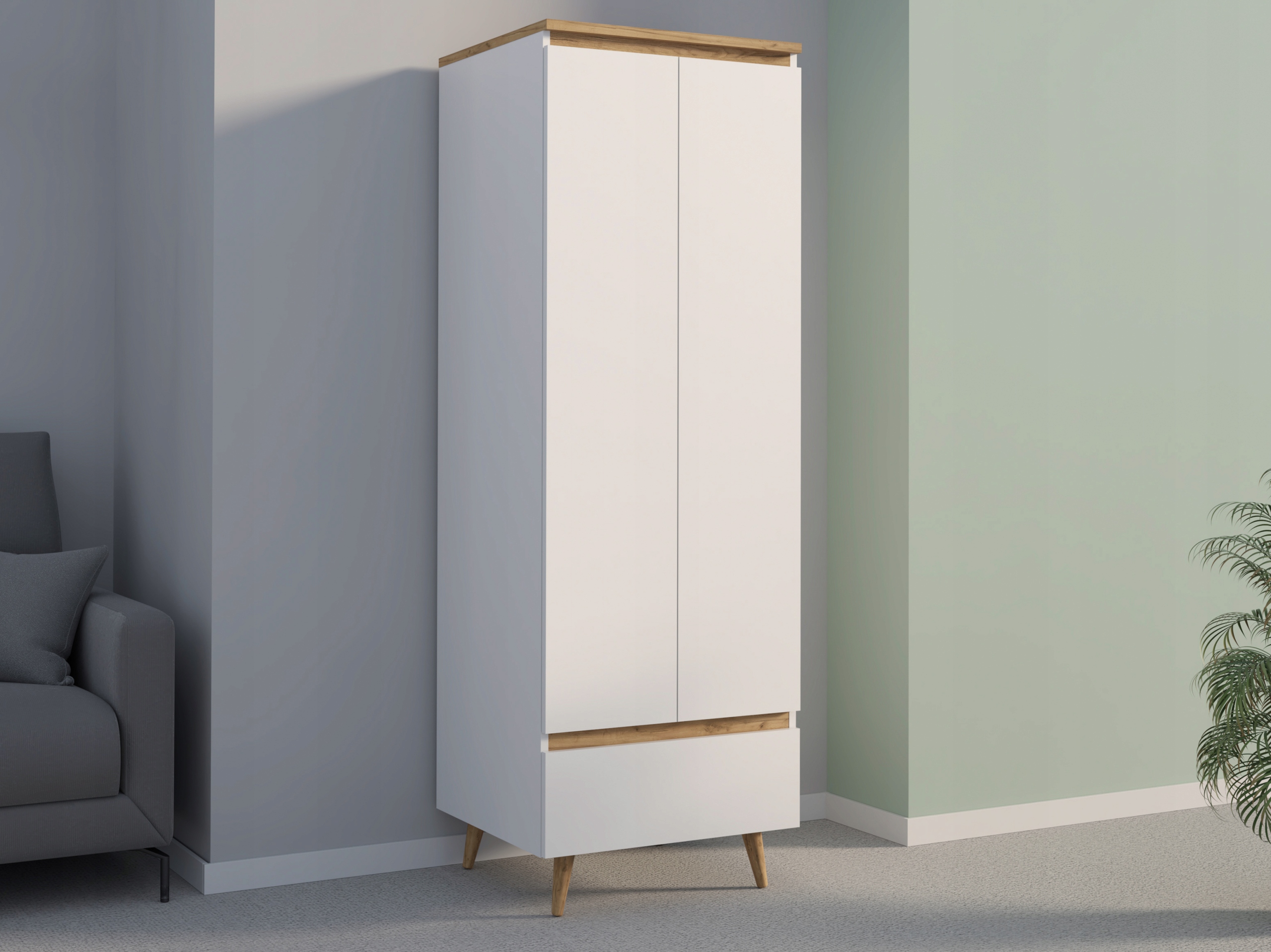 Гардероб скандинавского стиля Норжа 04 в белом и дубовом ремесле