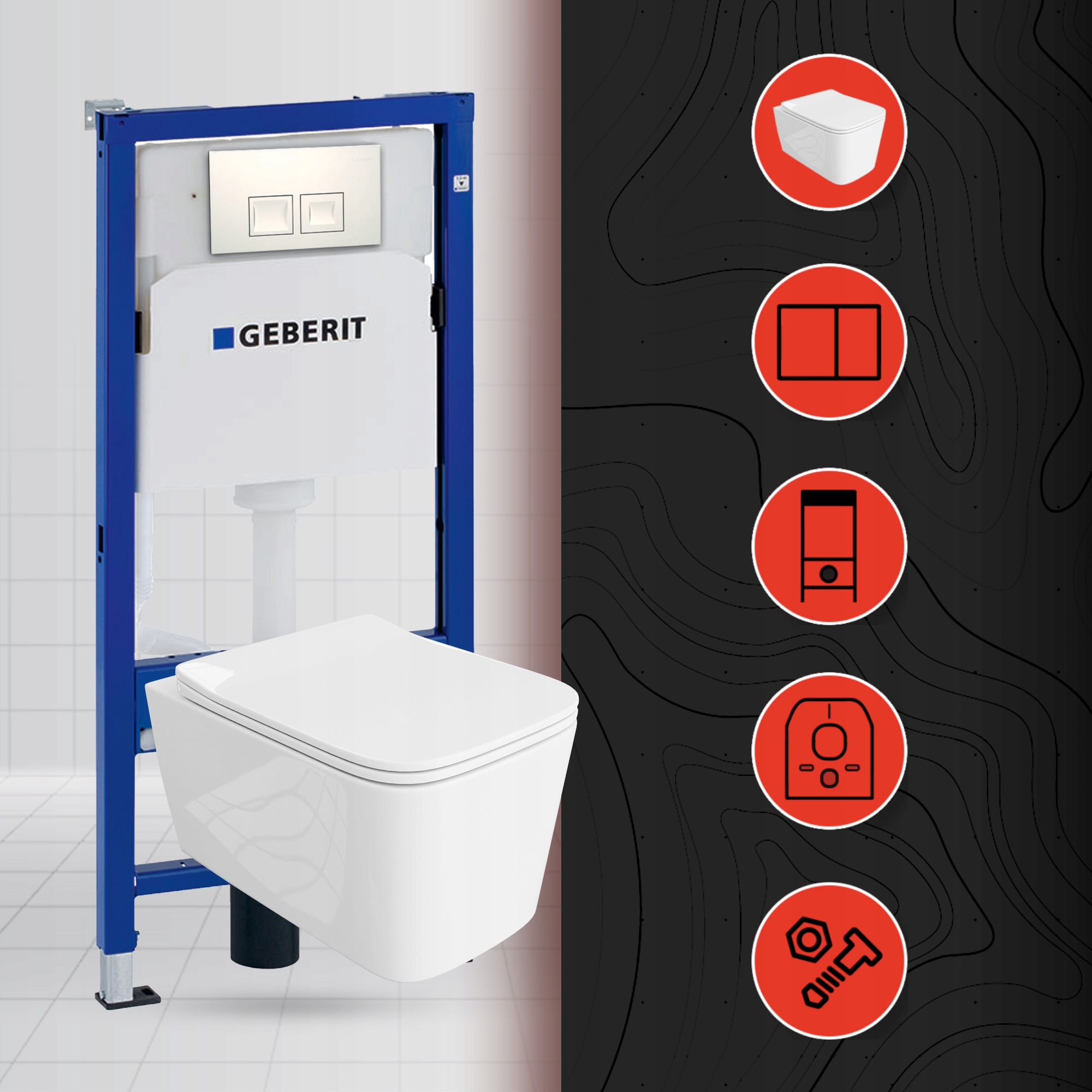 Geberit Duofixbasic Set + Delta Białly Button + WC Bowl