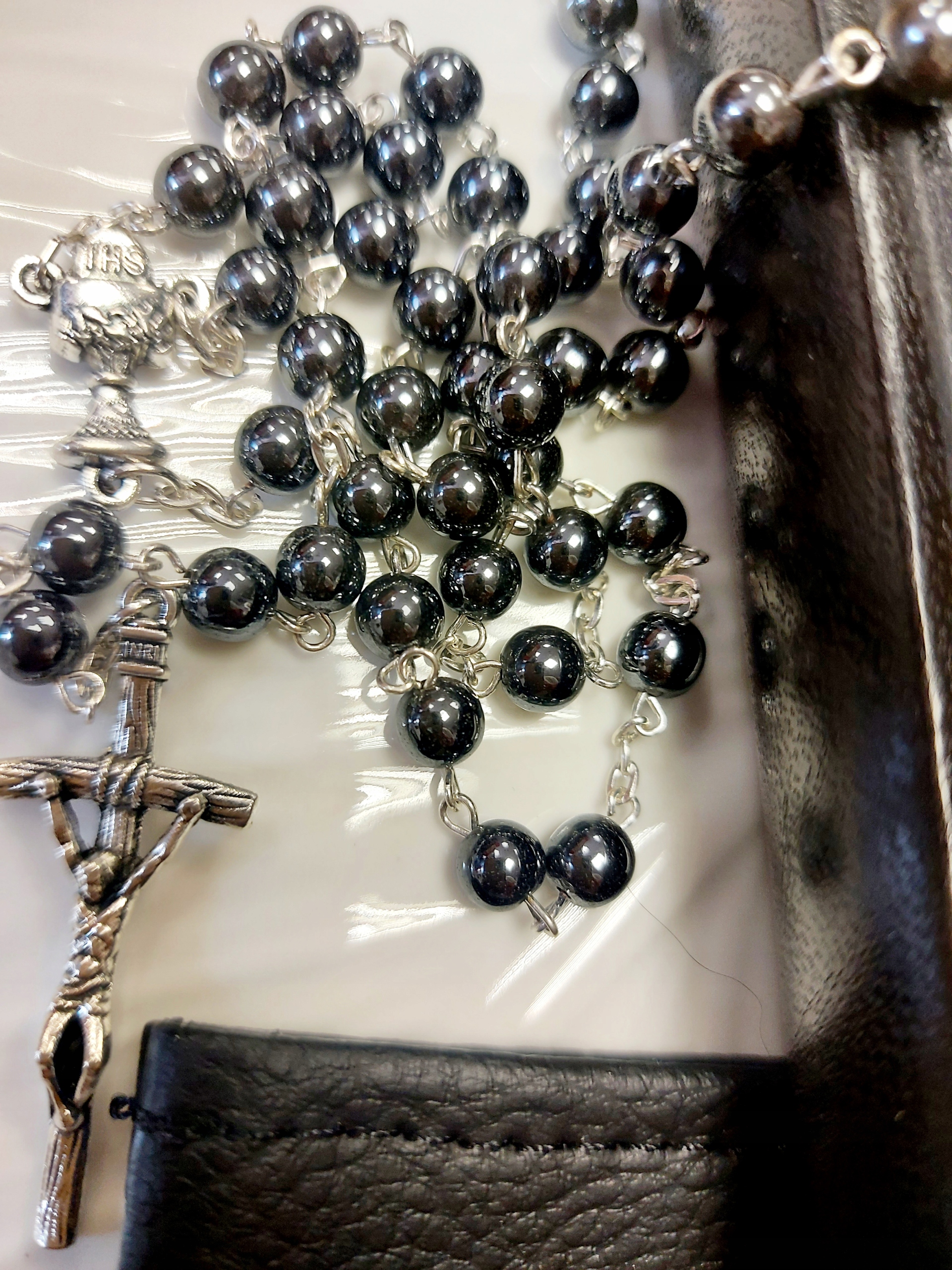 Чётки к Первому Причастию - натуральный камень гематит в форме шара.