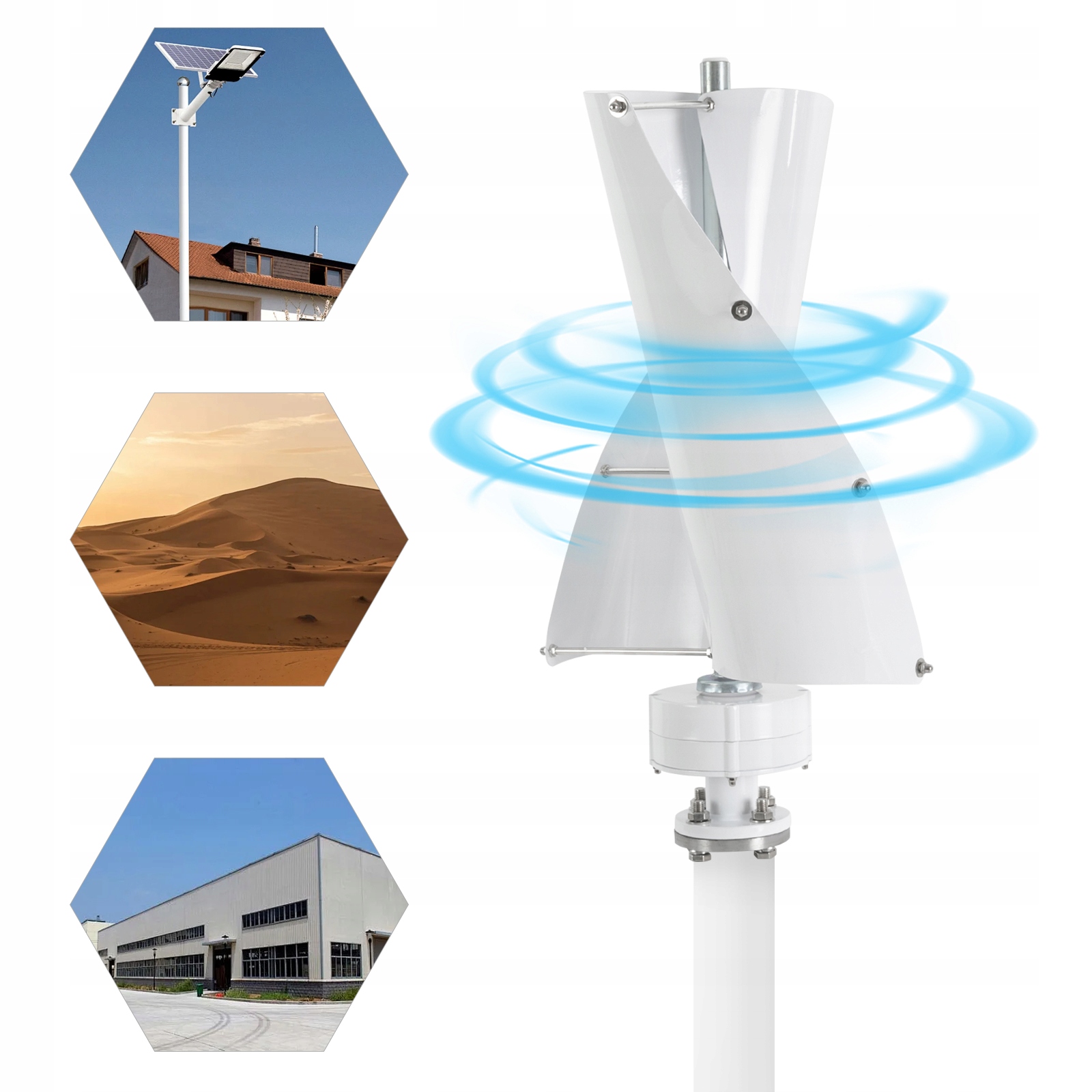 эта ветряная турбина 100 Вт была тщательно разработана для вас, которая ищет зеленую энергию в сочетании с современной эстетикой. , в отличие от традиционных ветряных турбин с горизонтальной осью, этот продукт использует расширенный принцип винтовой структуры, который позволяет эффективно действовать в средах с низким уровнем скорости, и благодаря простому обслуживанию установки и низким уровням шума может быть эффективно интегрировано с различными средами.