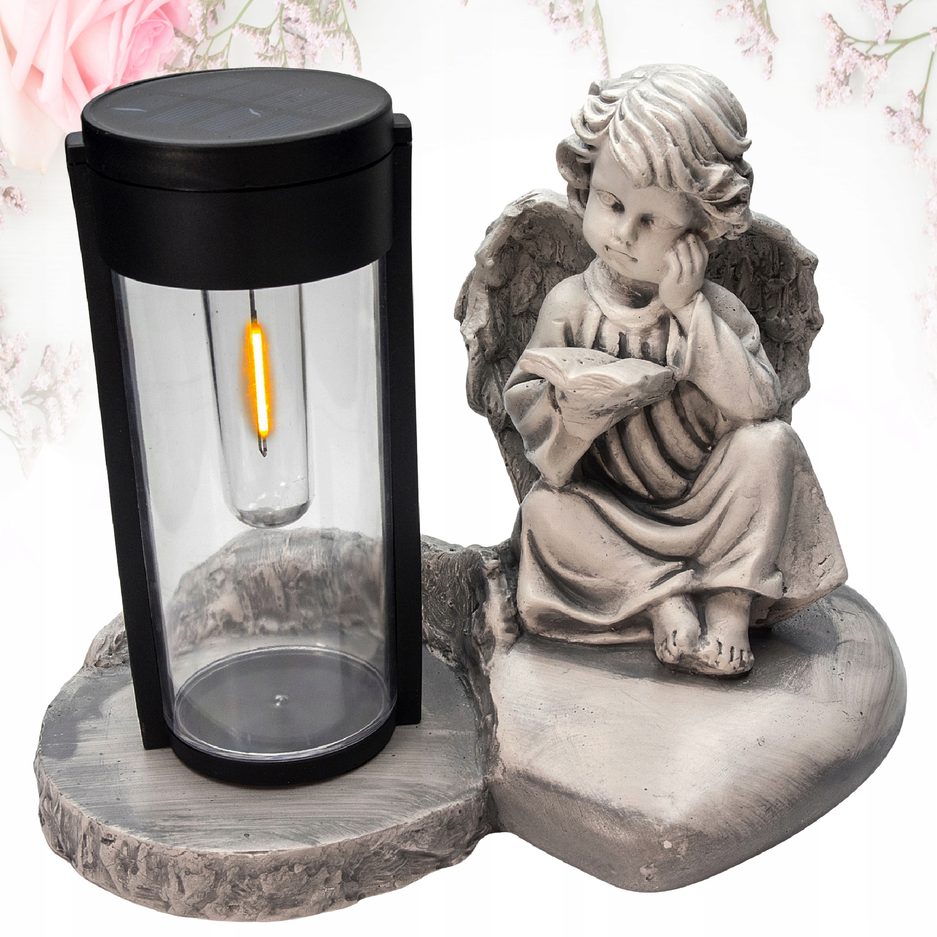 ⭐ Гипсовая статуэтка для чтения ангела с большой солнечной светодиодной лампой - украшение памяти надгробной плиты ⭐