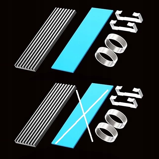 - Тепловая шайба расположена между SSD M.2 и тепло -телом и проводит тепло от M.2 SSD до тела на радиаторе. Имеет низкую вязкость, теплопроводность, изоляцию и не повреждает SSD