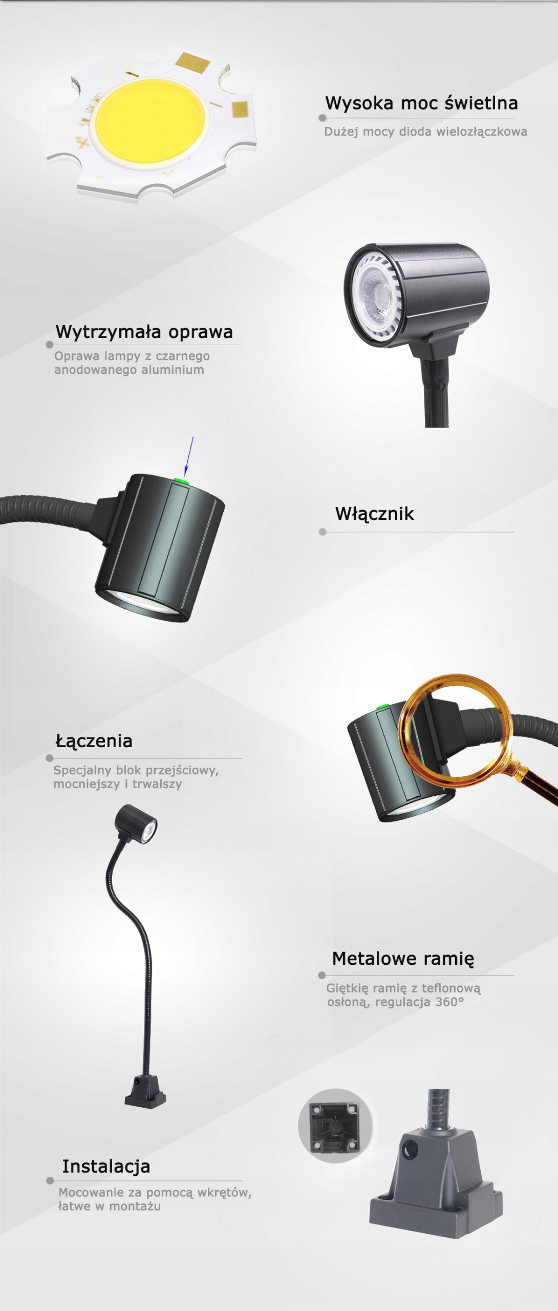 - Гибкий кронштейн, позволяющий для удобного направления света.