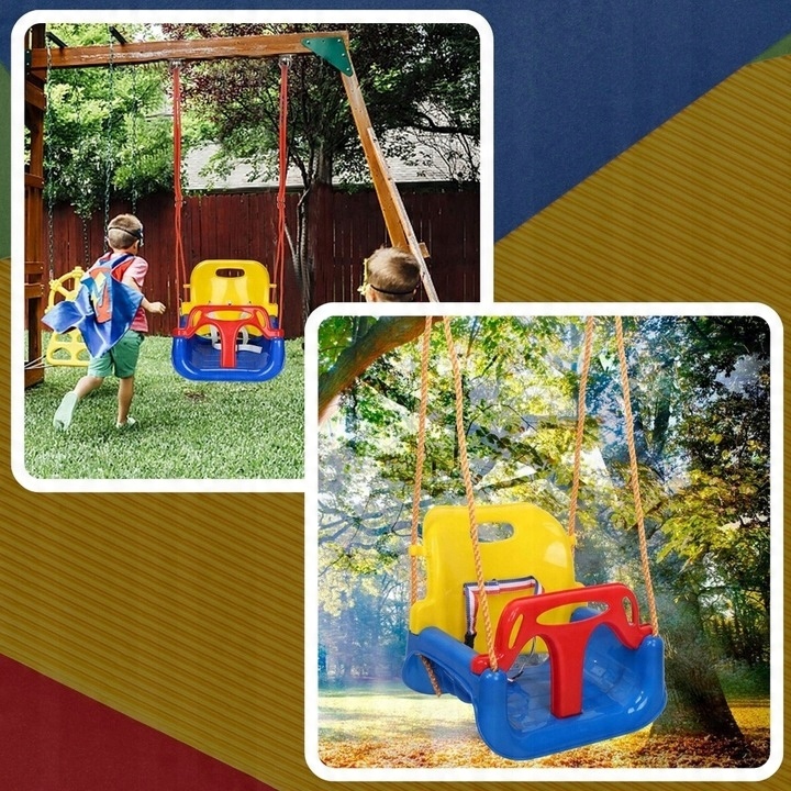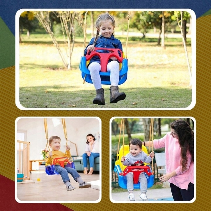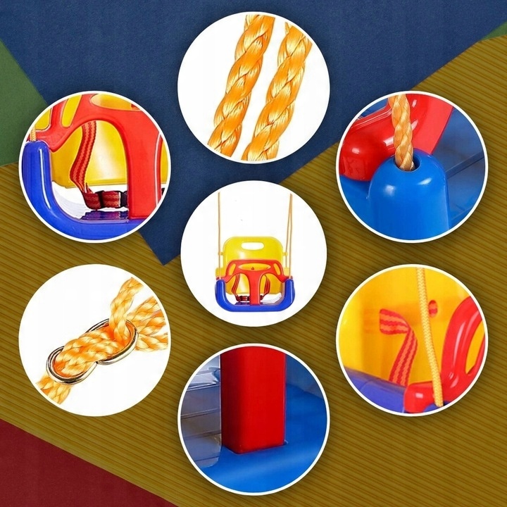 Подарите своему ребенку незабываемые моменты веселья благодаря нашим качелям 3-в-1 с прочным материалом и подвеской! Сиденье качелей изготовлено из высококачественного пластика, который не только прочен и устойчив к изменяющимся погодным условиям, но и обеспечивает комфорт и устойчивость во время игры. Веревки и металлические крепления обеспечивают безопасность и долговечность, поэтому вы можете быть уверены, что качели прослужат долгие сезоны. Красивые и насыщенные цвета качелей привлекают внимание ребенка и добавляют привлекательности, что позволяет получить еще большее удовольствие от игры.