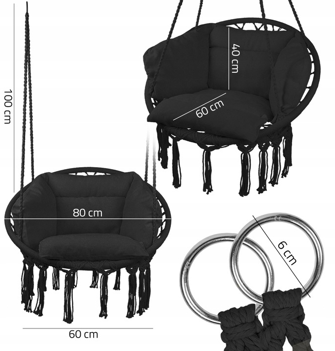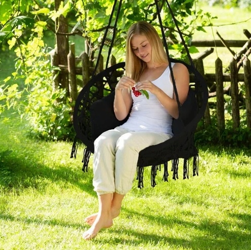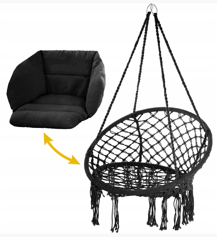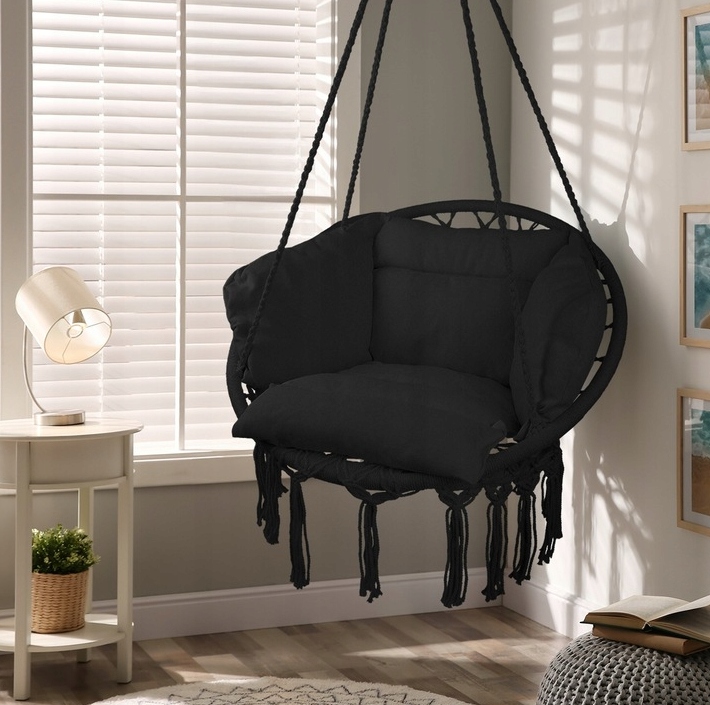 Свинг -кошелек в саду висеть стул черный стул подушки