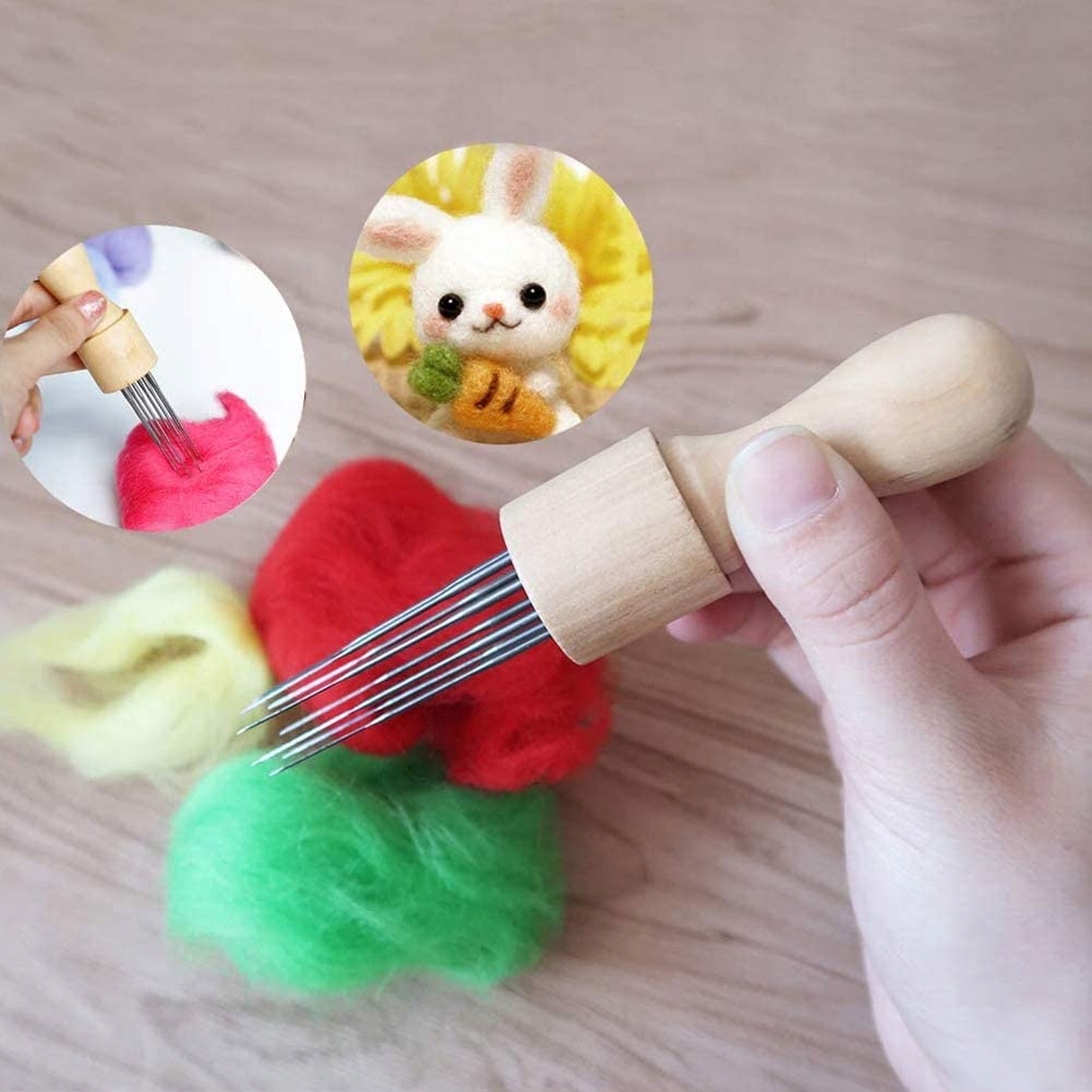 Набор для игольного валяния: полный набор инструментов для валяния шерсти с инструкциями, включая иглу для валяния, пену для валяния, деревянную ручку, шило, клей-карандаш, насадку для пальцев, отлично подходит для валяния шерсти своими руками.