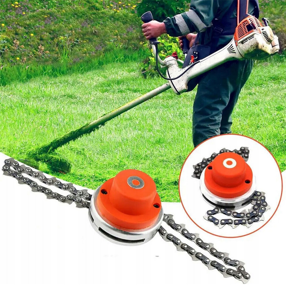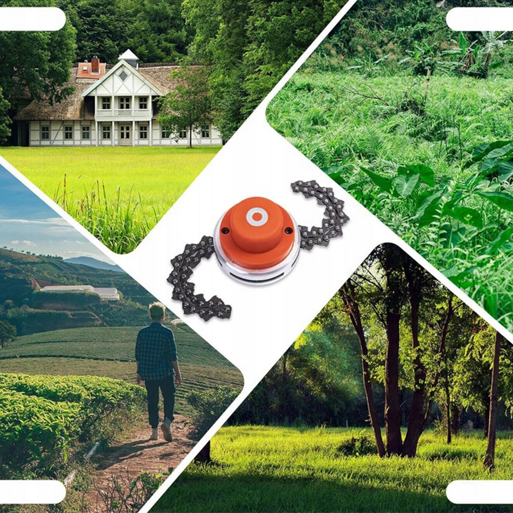Головка цепной косилки изготовлена из высококачественного марганца. сталь обеспечивает превосходную износостойкость, твердость и остроту. Прочность делает его идеальным для стрижки газонов и сорняков любой толщины.