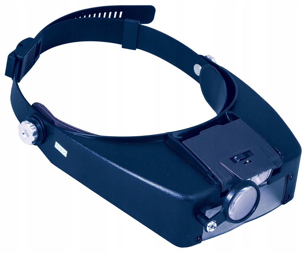 Лупа крепится к голове с помощью регулируемого оголовья. Освещение работает от батареек.