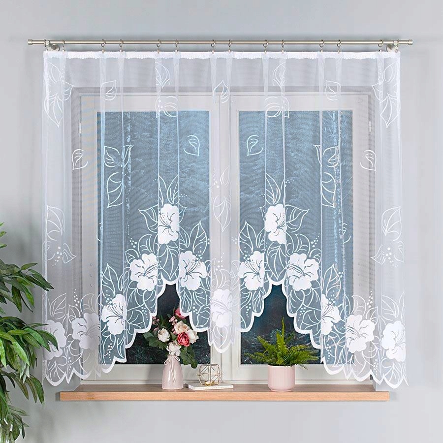 Предмет продажи - жаккардовая штора с плотным, толстым узором, отделанная цветком в арке. Он изготовлен из высококачественной полиэфирной пряжи. Он хорошо пропускает свет и не требует глажки. Идеально подходит для комнаты или кухни.