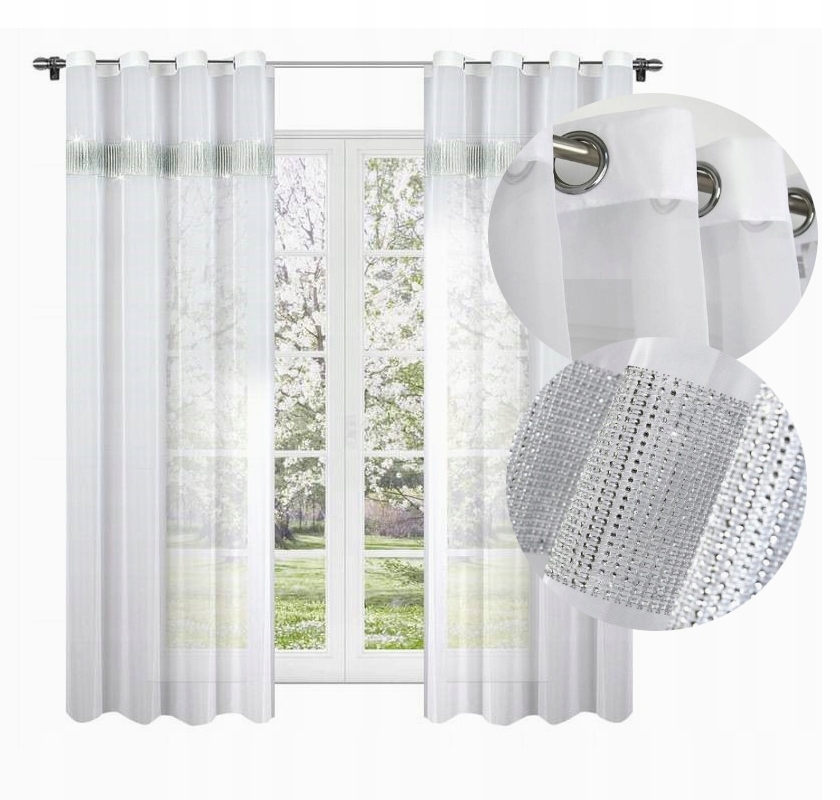 Белая штора с цирконами