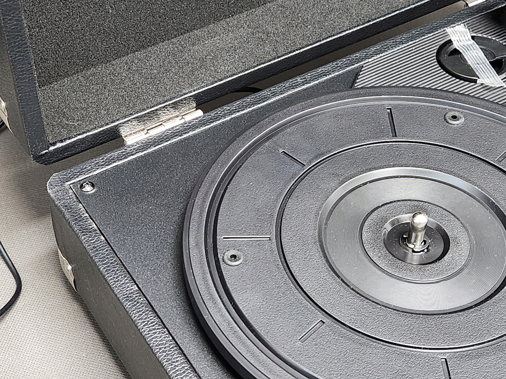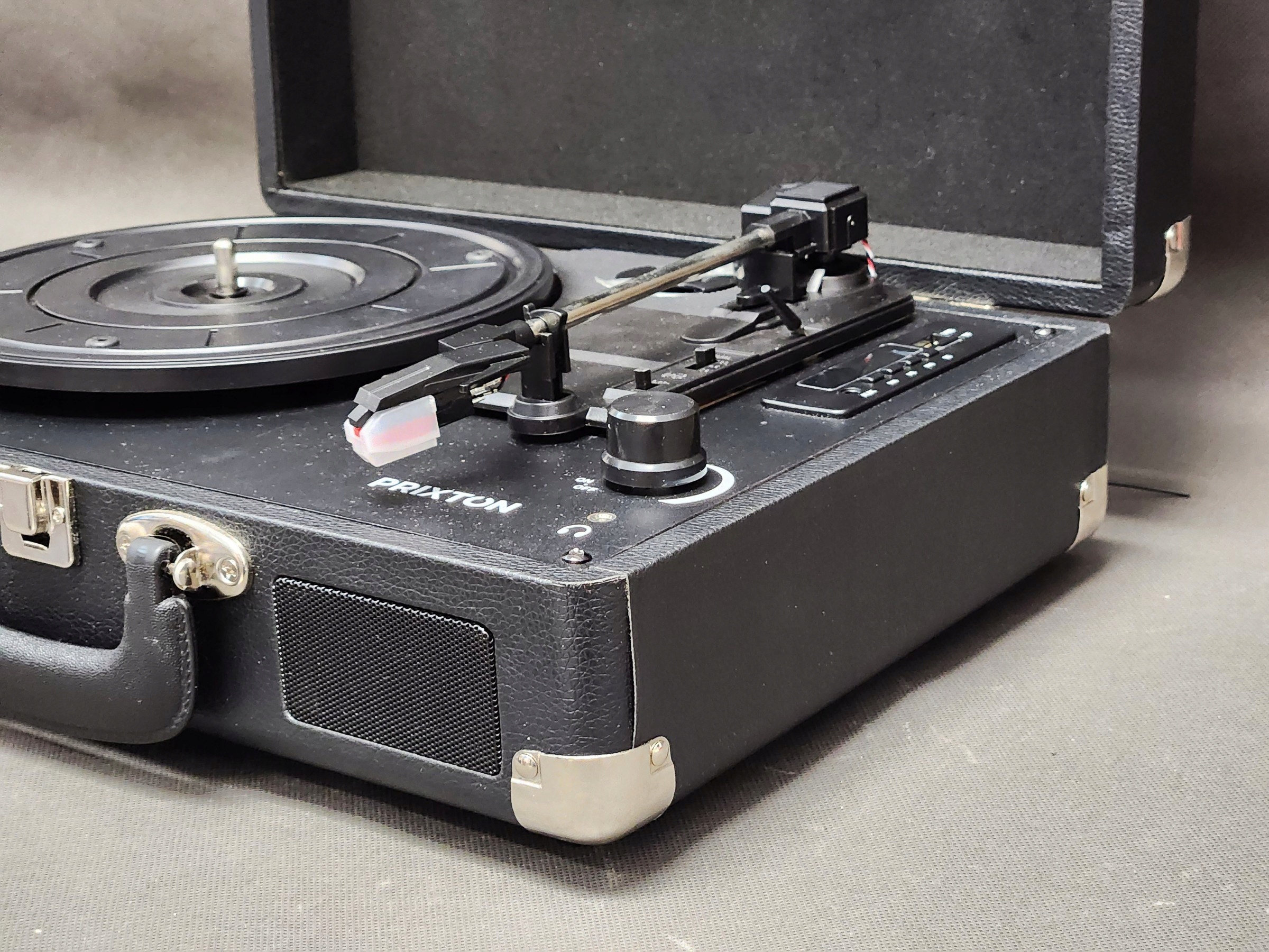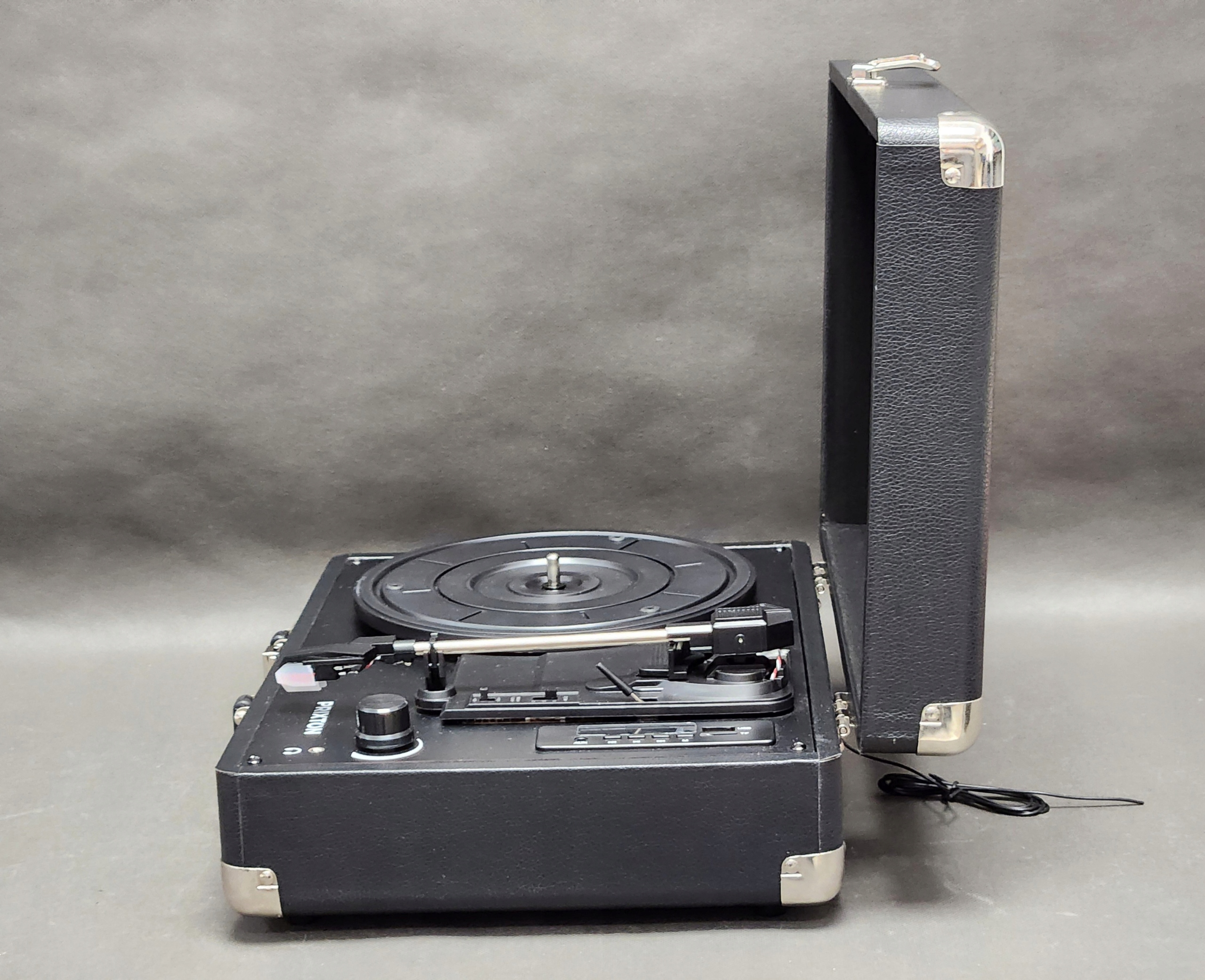 - PRIXTON VC400 — Винтажный виниловый проигрыватель — Включение виниловых пластинок — Музыкальный проигрыватель через Bluetooth и USB — 2 встроенных динамика — Дизайн чемодана — Черный