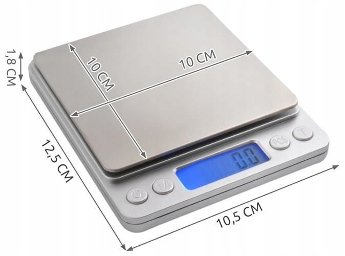 - s Определение - Диапазон измерений: 0-2 кг; Точность измерения: 0,1 г; Единицы мер: g/ozt/ozt/dwz/ct/gn/tl; Материал: сталь; Дисплей: синий ЖК -дисплей; Питание: 2 x AAA батарея (включена); Размеры веса (длина/ширина/толщина): 12,5x10,5x1,8 см; Шамелк Размеры: 10x10 см; Продукт Собственный вес: 300G.