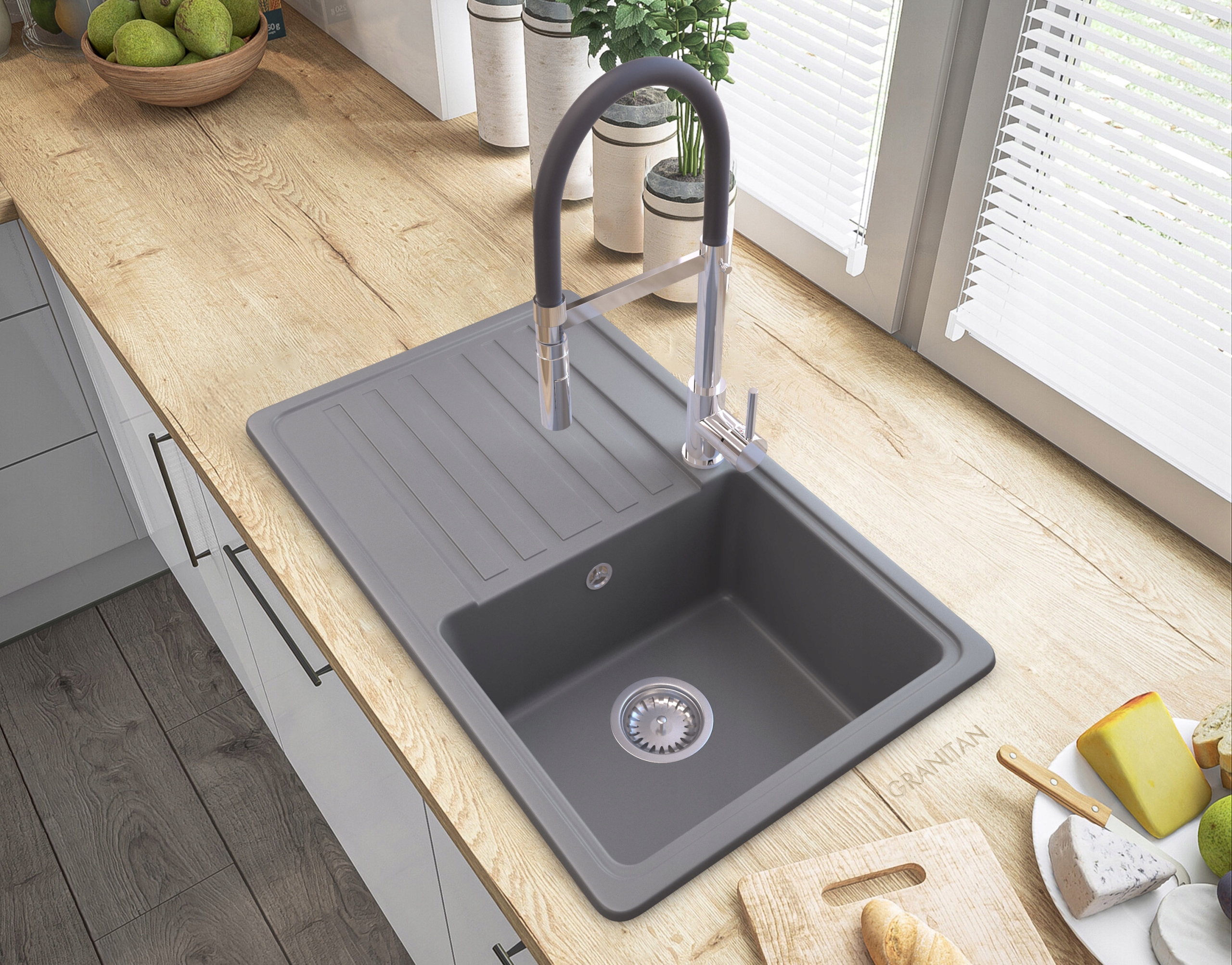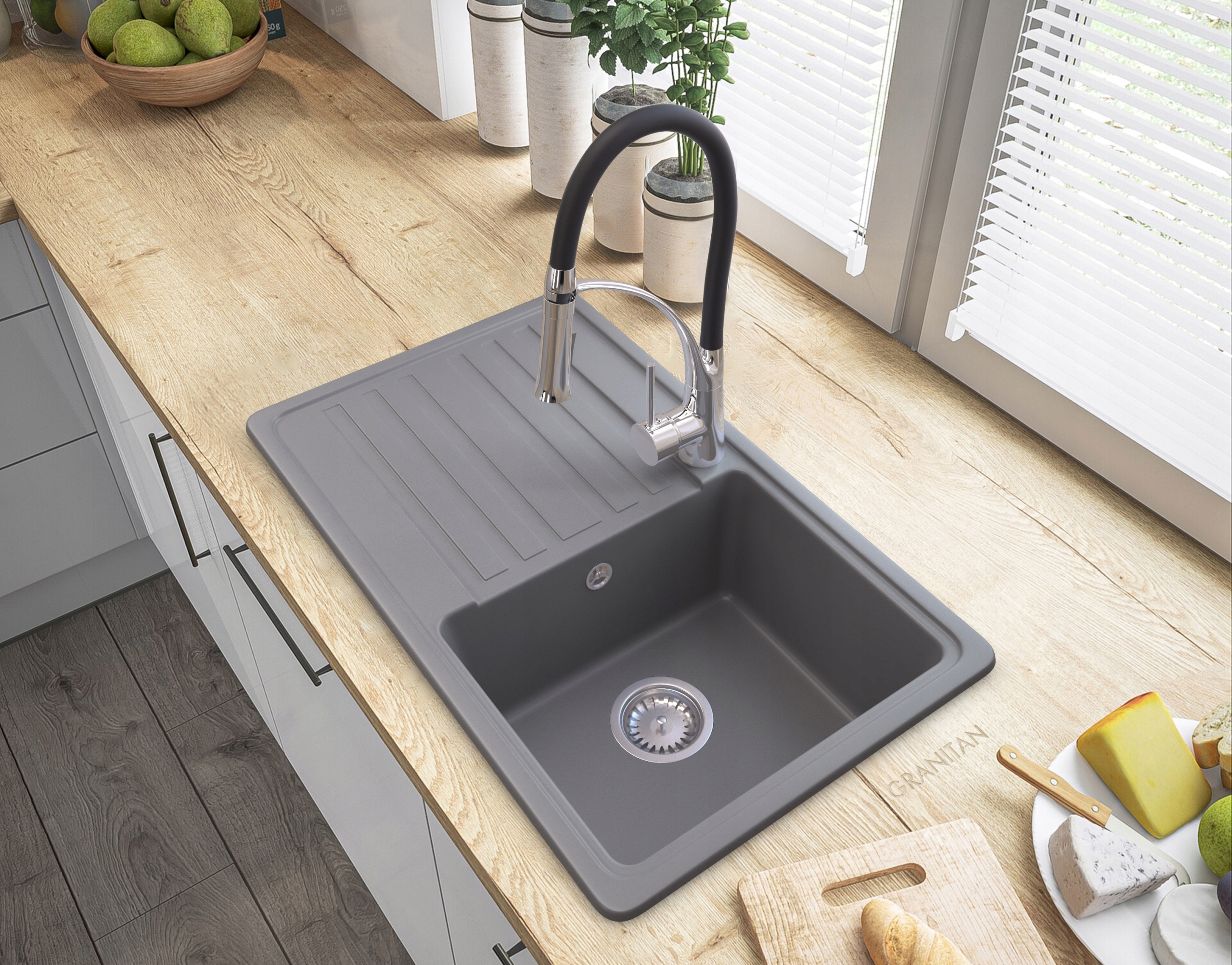 классическая гранитная раковина с дренажной.