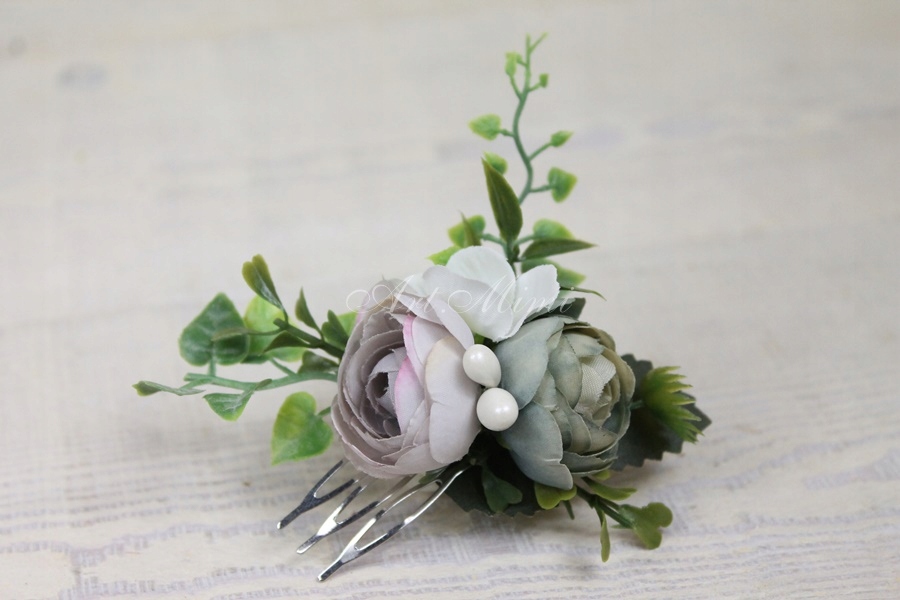Грабня для волос, маленькая пиони -серая бирюзовая свадьба