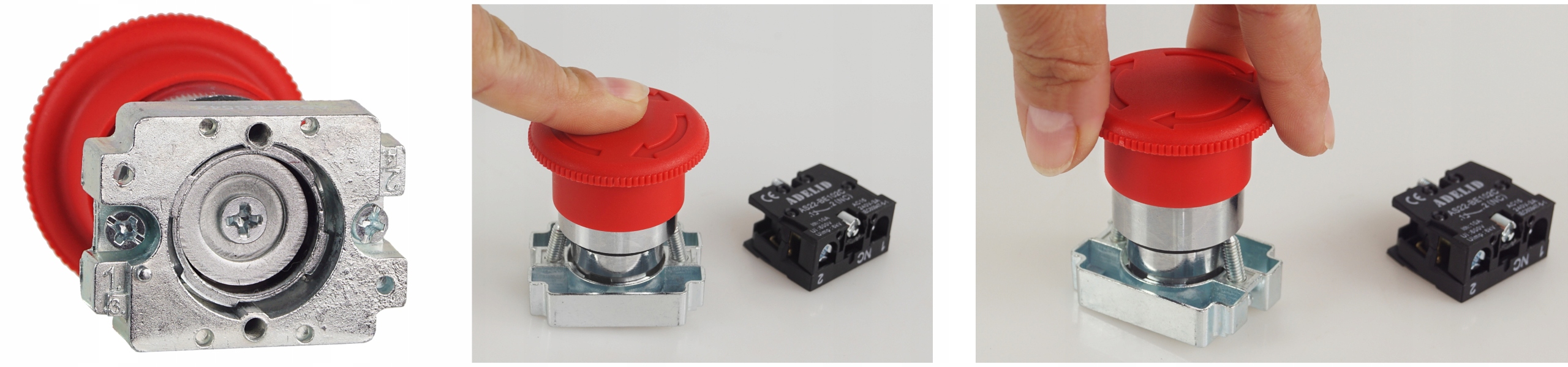 Действие: кнопка безопасности заблокирована нажатием гриба, изолированной вращением.