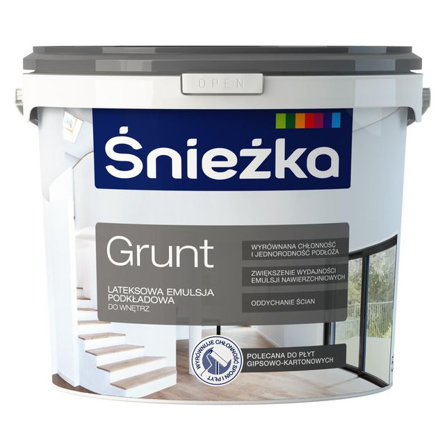 SNOW WHITE LATEX FOUNDATION EMULSION благодаря специальным добавкам представляет собой густую эмаль и ее можно наносить толстым слоем. Проникает в основание и выравнивает впитывающую способность стены, тем самым уменьшая расход краски. Устраняет различия в текстуре и цвете основания. одновременно улучшая его адгезию. Использование Śnieżka Grunt значительно снижает затраты на покраску, поскольку для достижения ожидаемого эффекта обычно достаточно одного слоя грунтовки и одного финишного покрытия. Особенно рекомендуется для первой окраски гипсокартона и поверхностей с неоднородной текстурой.