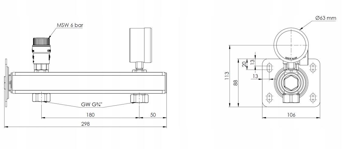 ▶ ️ Когда давление в установке горячей подготовки воды не превышает 6 бар, защитный клапан MSW, который является частью группы безопасности BSB, остается закрытым. Давление выше значений клапана клапана вызывает движение его мембраны и воздействие полета, позволяя удалить избыток фактора из установки и в то же время снизить давление до соответствующего (безопасного) значения >