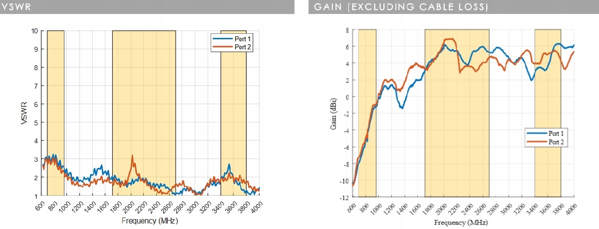 - Усиление на частоте 3400–3800 МГц: 6 дБи
